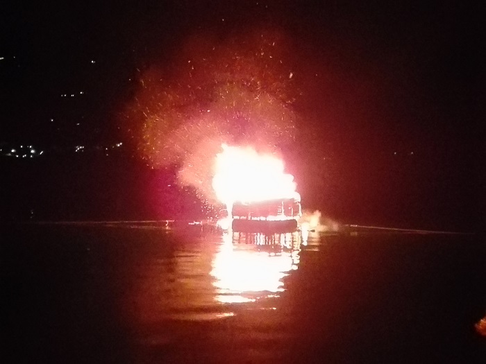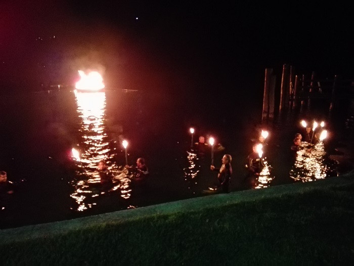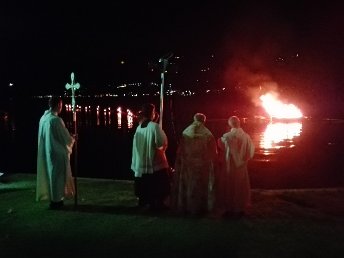 Lì un intenso momento di preghiera con don Giuliano, i saluti del sindaco di Pettenasco Franco Sartirani, il grande falò sul lago e la presenza dei sub del Club Sommozzatori di Borgomanero.