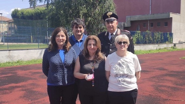 Nella foto: in prima fila da sinistra vicesindaco Libera Ricci dirigente scolastica Francesca Civello e professoressa Giuditta Lonardi. In seconda assessore Paolo Zucchetti e Luogotenente Maresciallo Gianluigi Penariol