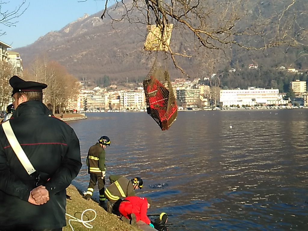 pomeriggio le operazioni di recupero della carcassa di un autoveicolo nel lago d’Orta a pochi metri dall’ex discoteca Kelly, nel quartiere Bagnella, in via lungo lago Gramsci, ad una decina di metri di profondità. Si tratta di una mini car Sulky, prodotta negli anni 80 di colore rosso. A bordo pare vi siano dei resti di ossa umane ma al momento non ci sono notizie precise, nemmeno sulla loro provenienza. L’auto era di proprietà di un uomo di Gozzano, classe 1908, deceduto una decina di anni fa. Ancora non è chiaro come mai il mezzo sia finito in acqua e chi vi fosse stato a bordo. Molte le voci rincorse durante la mattinata, da chi si avvicinava per capire cosa stesse succedendo. Si racconta di due uomini, amici, a bordo di un simile mezzo, caduti nel lago in anni in cui non esisteva ancora l’odierna passeggiata sul lago lastricata con sanpietrini e quindi l’accesso al lago avveniva semplicemente uscendo di strada, scendendo dalla scarpata. Ad avvistare il mezzo sono stati ieri, sabato 7 gennaio, tre sommozzatori dell’associazione sub Verbania che nel primo pomeriggio hanno deciso di fare un’immersione nel lago, in modo amatoriale. Un giro di una mezz’ora in direzione nord, verso il golfo di Omegna. Un percorso che abitualmente viene seguito. Poi, al ritorno dal giro, prima di uscire dall’acqua, hanno notato il mezzo sommerso con tanto di targa spostato verso sud, non lontano dalla curva in cui si trova la discoteca Kelly. Subito hanno allertato i Carabinieri di Verbania che hanno organizzato il recupero del mezzo questa mattina intorno alle 9. Sul posto c’erano oltre gli uomini della stazione di Verbania e Omegna, i vigili del fuoco di Omegna, il magistrato Sveva de Liguoro e il procuratore capo Olimpia Bossi di Verbania. Nelle fredde acque del lago si sono immersi i sommozzatori dei vigili del Fuoco di Torino, giunti appositamente alle 10 dal capoluogo piemontese. Mentre i colleghi di Omegna tagliavano alcuni rami delle piante presenti sulla passeggiata veniva posizionato il braccio della Gru in modo da permettere il recupero nel lago da parte di due vigili sommozzatori. Dopo una prima immersione è stato possibile iniziare a riportare a riva, alle 12.30 circa, solo le ruote del mezzo. Per completare il recupero è stato necessaria una seconda immersione nel primo pomeriggio con l’ausilio di una rete che ha permesso di raccogliere la scocca ed il suo contenuto. I resti sono stati portati presso il deposito del carro attrezzi incaricato, nella zona industriale di Gravellona Toce. Domani verrà effettuato l’esame del dna sulle ossa ritrovate all’interno del mezzo. Vicino alla carcassa è stata rinvenuto anche un portafogli contente un documento di identità che però nulla hanno a che fare con il proprietario del mezzo, come confermato dai Carabinieri presenti in loco.