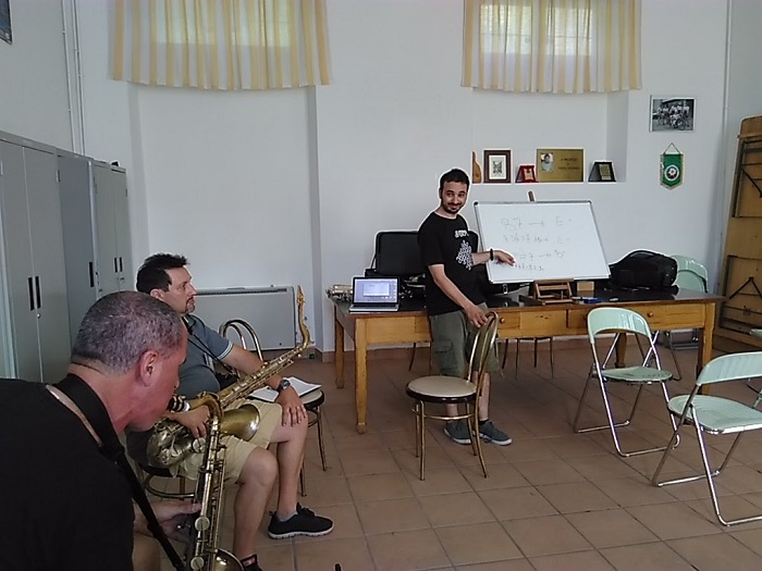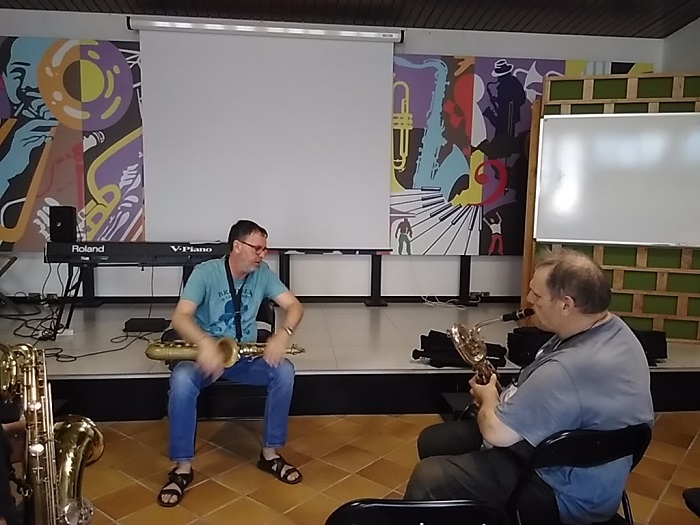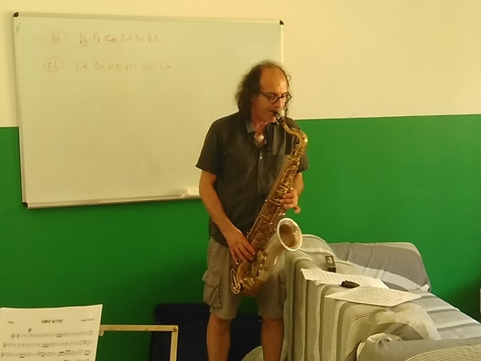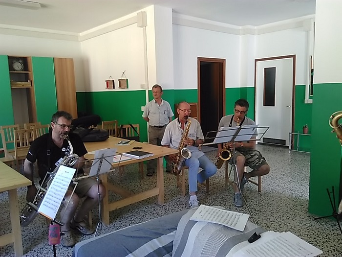 QUARNA SOTTO- 24-06-2017- E’ iniziata ieri pomeriggio, venerdì, la decima edizione della Masterlcass di Saxofono. I partecipanti, una trentina circa, sono stati accolti nell’auditorium del Museo di Storia Quarnese dove hanno ricevuto tutte le informazioni necessarie per seguire al meglio l’esperienza che comprende, oltre alla musica, la visita al museo di Storia quarnese ed alla ditta “Rampone & Cazzani” , unica presente in paese, produttrice di saxofoni. L’auditorium è stata un’aula di lezione: qui si è sistemato Robert Bonisolo. A pochi passi David Brutti, nella sala musica sopra la sede del Circolo, ha trovato la sua sistemazione mentre Davide Grottelli nell’ostello, ha iniziato a suonare con i suoi “allievi”. Un “triangolo” musicale con un “satellite”, Gianni Denitto ben sistemato al fresco nella sala delle associazione, al piano terra del palazzo municipale. Questa sera si ritroveranno tutti per un aperitivo musicale, alle 18,30 all’auditorium del Museo. Dopo cena, alle 21, Davide Grottelli “Echoes” Trio con Marco Siniscalco (basso elettrico, live electronics) e Armando Croce (batterista). Qui una ripresa delle lezioni svolte ieri pomeriggio.