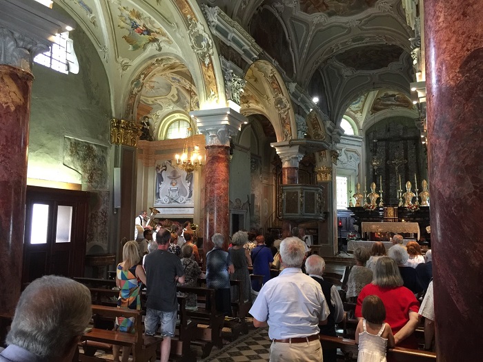 CESARA - 07-08-2017 - Da sabato 5 a martedì 8 agosto si sono svolti i festeggiamenti patronali di Sant’Apro. Sabato dopo apertura della cucina in piazza Marconi si è ballato con l’orchestra “Fred e gli Elegant”. Domenica 6 si sono svolti i momenti religiosi dove la comunità si è riunita dapprima per la messa delle 11 presieduta da don Giorgio Borroni direttore della Caritas e del centro missionario e coadiuvata dal parroco, don Renato Sacco. Nel pomeriggio attorno alle 17 don Renato Sacco ha presieduto la preghiera comunitaria, officiando la santa messa con la stola ricevuta in dono da Don Angelo, prete missionario in Cambogia raffigurante un Gesù crocifisso con una gamba più corta a testimonianza di come questa nazione sia flagellata da mine antiuomo. Durante l’omelia il sacerdote ha ripercorso l’agiografia di San Apronio, soldato divenuto martire e simbolo dei martiri di ieri e di oggi ricordando la strage di Hiroshima o l’esodo del popolo del nord Iraq ad opera dell’Isis che ha coinvolto 100 mila innocenti. A causa della pioggia che ha bagnato il terreno durante la celebrazione religiosa è stata sospesa la processione per le vie del paese, permettendo solo la sfilata finale della Nuova filarmonica Omegnese dalla chiesa a Piazza Marconi. Alla sera, Paolo Drigo, famoso cantante trasformista, ha incantato grandi e piccini con le sue interpretazioni. I festeggiamenti sono continuati lunedì 7 agosto alle 15 con “E’ qui la festa” giochi ed animazioni al campetto della chiesa con merenda e sorprese per tutti i bambini e alla sera con le danze dalla fisarmonica alla disco con il duo “Max e Pamela”. I festeggiamenti si sono concluderanno martedì 8 con il duo “L’una e l’altra band” le famose Luciana e Morgana e le hit di “Giampiero Ponte DJ”. (Samuel Piana)