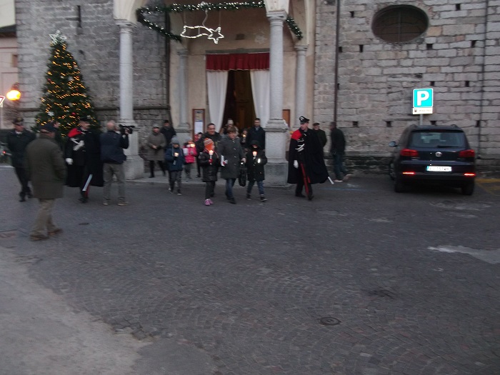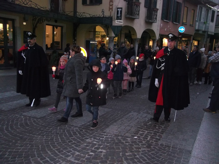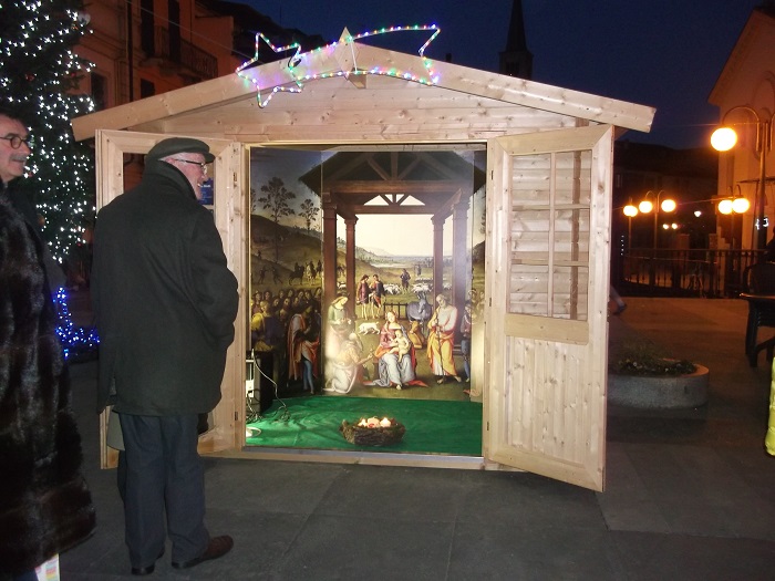 OMEGNA- 09-12-2017- Accompagnata dalla fiaccolata dei bambini del catechismo e benedetta da don Gianmario Lanfranchini, è avvenuta anche la tanto attesa inaugurazione del Presepe che riproduce l'Adorazione dei Magi (opera del Perugino). "Non potevamo- queste le parole dell'Assessore Mattia Corbetta- non riportare il Presepe in piazza e ringraziamo, per questo motivo, Sergio Viganò". Il primario di radiologia, un vero "mago" dei presepi ha ringraziato e spiegato ai presenti il valore dell'opera e ha quindi donato al Comandante dei Carabinieri, Paolo Puglisi, una riproduzione artistica della Natività. Il pomeriggio era iniziato con la castagnata degli Alpini ed è proseguito con il coro gospel "Black Inside".