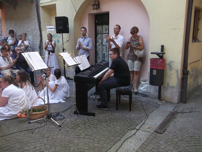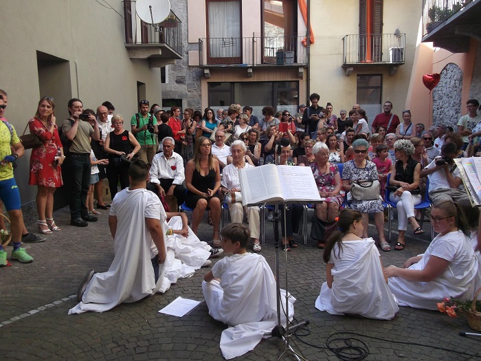 OMEGNA- 29-06-2018- E' stato un avvio, quello delle Notti Romantiche, che ha strappato consensi e applausi. Una giornata, la prima di una tre giorni che si preannuncia ricca, che è cominciata con i saluti del Sindaco che, dopo aver ringraziato l'Assessore Sara Rubinelli, ha aperto la giornata dedicata all'amore con l'intervento musicale degli allievi del laboratorio di canto corale dell'UNI3. Sulle note di "Non dimenticar le mie parole" ha preso il via la manifestazione con il coro dell'UNI3 che ha proseguito con "Pensiero" e "Mademoiselle de Paris". Un crescendo di emozioni che dalla Piazza Mameli si è spostato in Piazza VIII marzo dove gli studenti della Scuola Media di Crusinallo hanno messo in scena "Pasticci(ni) romantici", felice gioco di parole che ha poi lasciato il posto agli studenti del Liceo Gobetti che si sono esibiti sulla zattera con letture e interventi musicali in tema “Amor, ch’a nullo amato amor perdona” sotto la direzione di Angela Centola. Di nuovo protagonista la Scuola Media di Crusinallo con “Dalla ‘Sapienza dell’amore all’amor gentile”, una passeggiata tra le poesie d’amore italiane medioevali. La chiusura di questa prima parte ha visto protagonista la Scuola Primaria di Crusinallo con con un accompagnamento musicale di violino, clarinetto e tastiera in “Bolli…AMO”. Dopo cena, per chiudere in bellezza, appuntamento in Piazza Mameli per “Il Canzonatore di Cuore”, teatro tratto dal Don Giovanni di Molière, portato in scena dalla Compagnia Amici per un Sogno di Omegna. Roberto Olzer, in uno splendido concerto al pianoforte, accompagnato dalla voce di Gian Maria Ferraris, ha chiuso la prima giornata con "Sempre e per Sempre" con Electric Land che ha proiettato sulle pareti di Piazza Mameli frasi d'amore significative. Domani, sabato 30 giugno, si replica con la felicità come tema dominante della seconda serata delle Notti Romantiche.