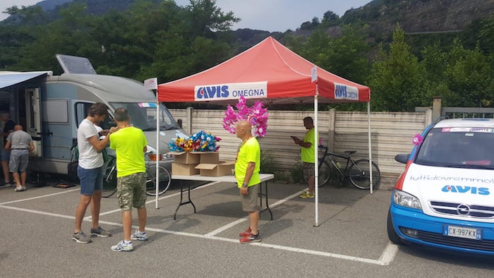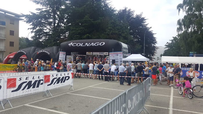 di Omegna ad un'ora dalla partenza presso piazzale Lodi. Nel clima festoso ed entusiasta, tra i numerosissimi curiosi accorsi in bicicletta è arrivata anche qualcuna delle cicliste che nella giornata di oggi correrà la quinta tappa del 29° Giro Rosa. Di fronte al palco allestito, i presenti hanno potuto prendere visione di uno spettacolo acrobatico di bicicletta a cura di Paolo Patrizi ed ha presenziato anche Giuseppe Rivolta, direttore del Giro.
