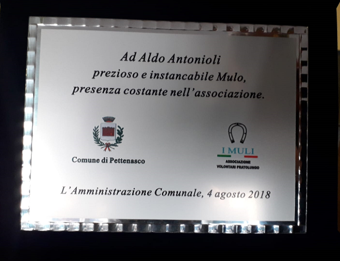 Quest’anno il riconoscimento è stato conferito al sig. Aldo Antonioli, prezioso e instancabile “Mulo” che da sempre è presenza costante nell’associazione.