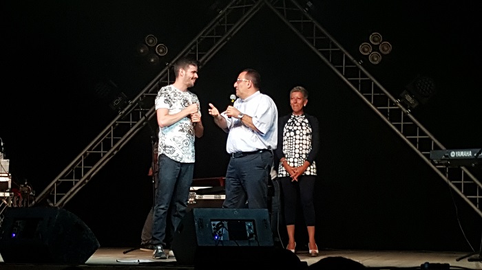 OMEGNA-23-08-2018- Dal palco dell’Ariston dove ha conquistato il secondo posto nell’ultima edizione del Festival di Sanremo nella categoria “Nuove proposte”, Lorenzo Baglioni è approdato ieri sera, mercoledì 22 agosto, sul palco di piazza Salera in occasione dei festeggiamenti di San Vito. Il pubblico costituito da moltissimi giovani ha applaudito il cantante toscano che con il suo successo “Il congiuntivo” presentato a Sanremo si è fatto conoscere anche dal pubblico televisivo. Un tempo professore di matematica, la musica è diventata per lui uno strumento didattico quasi provocatorio nei confronti del metodi più tradizionali, un linguaggio nuovo che utilizza per trattare argomenti che spaziano dalla grammatica alla fisica ma anche a temi più delicati e di carattere sociale come il problema del bullismo e della mancanza di assistenza a disabili come chi è costretto alla sedia a rotella. In questo senso il giovane cantante toscano ha cercato di arrivare direttamente al cuore degli spettatori prima con la canzone “La ballata delle offese” e poi con la canzone “Canto anch’io” in cui ha presentato la vita di un ragazzo che, a causa di problemi motori, non può muoversi se non con una carrozzina e per la mancanza di ascensori nei condomini o di apposite pedane sui mezzi di trasporto non può vivere una vita normale. La scuola come un gioco sembra davvero possibile con lui e tutte le discipline diventano musica, da “El Corazon” in cui spiega il funzionamento del cuore a “L’apostrofo” in cui parla, per l’appunto, di un elemento grammaticale non sempre rispettato. Non è mancato il colpo di scena finale: a mancare all’appello è infatti l’ora di religione, come ha fatto notare la conduttrice Loredana Rossi chiamando sul palco don Gian Mario Lanfranchini, e, per rimediare alla lacuna, Lorenzo Baglioni ha promesso al parroco ed ai presenti di realizzare una canzone a tal proposito e di regalarla poi ad Omegna, in ricordo della piacevole serata trascorsa nella cittadina lacustre. (E.C.)