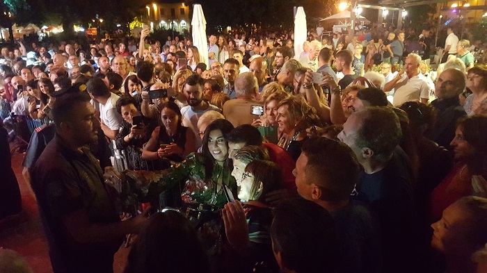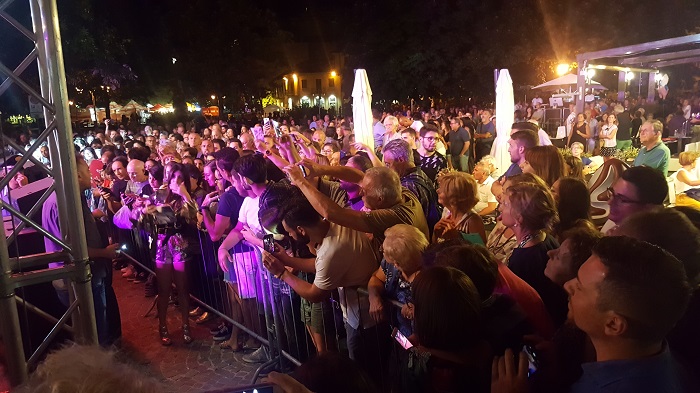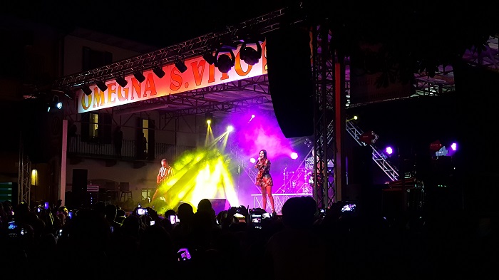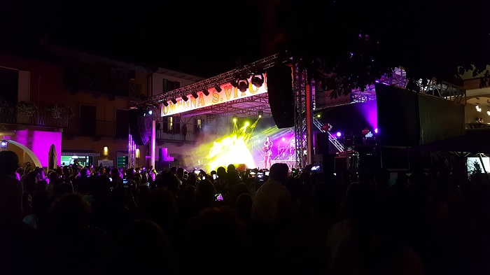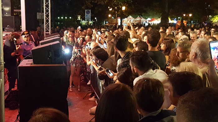 OMEGNA-24-08-2018- L’aria che in queste serate pervade piazza Salera è di grande partecipazione e soddisfazione. Gli spettatori l’hanno riempita anche ieri sera, giovedì 23 agosto, in occasione dell’esibizione di Bianca Atzei, nota per la partecipazione all’ultima edizione del programma televisione “L’isola dei famosi” e per la doppia presenza al Festival di Sanremo nel 2015 con “Il solo al mondo” e nel 2017 con “Ora esisti solo tu”. Il caloroso pubblico dei festeggiamenti di San Vito ha fatto sentire a casa la giovane cantautrice trentunenne che, al termine dello spettacolo, ha cantato in anteprima il suo nuovo brano “Come in un’isola” che uscirà il prossimo venerdì 31 agosto, regalando dunque ad Omegna un inedito mai cantato prima. “Vi ringrazio con tutto il mio cuore” ha affermato la Atzei prima di saltare giù dal palco per concedere selfie ai fan della prima fila in un piacevole fuori programma che ha scombussolato gli spettatori che già si erano portati sul retro del palco con l’intenzione di scattare qualche fotografia con la gradita artista. Con il suo vestito luccicante, Bianca Atzei, nome d’arte di Veronica Atzei, ha dominato il palco di piazza Salera proponendo pezzi di genere variegato provenienti dalla sua produzione ma ha anche interpretato brani di altri autori quali Vasco Rossi o il noto “Hallelujah” di Leonard Cohen alternando momenti di grande energia ad attimi più intimi e profondi. Concluso lo spettacolo e dileguati i fan sazi dei selfie con l’artista, ha quindi potuto iniziare piovere senza che il temporale inficiasse la serata. (E.C.)