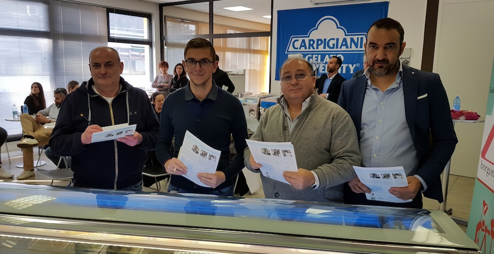 ha fatto ieri tappa a Omegna nella sede di Borgotti, concessionario Carpigiani, dove si sono sfidati a colpi di dolcezza 14 gelatieri delle province di Verbania, Novara e Vercelli. Vincono la gara “Zibibbo e ficassina” di Alessandro Boglio della gelateria La 500 di Trecate (NO), un sofisticato gelato alla crema con aggiunta di Zibibbo, variegato con ficassina – un tipico biscotto dell’Ossola – sbriciolata, e “Torta di mele” di Raffaella Magistris e Loris Cosentino della gelateria bar Maggiore di Verbania, un gelato che ripropone il classico dolce, realizzato con mele Andy caramellate e flambate con brandy e variegato con crosta di torta di mele e aggiunta di composta di mele in superficie. Vista l’altissima qualità delle proposte, la giuria ha deciso di assegnare una menzione speciale a “Bonet” di Daniele Ghelma e Rosita Cruppi della gelateria Frigidarium di Varallo Sesia (VC), una trasposizione del classico dolce al cioccolato piemontese. In qualità di menzione speciale, questo gusto può sperare in un ripescaggio.