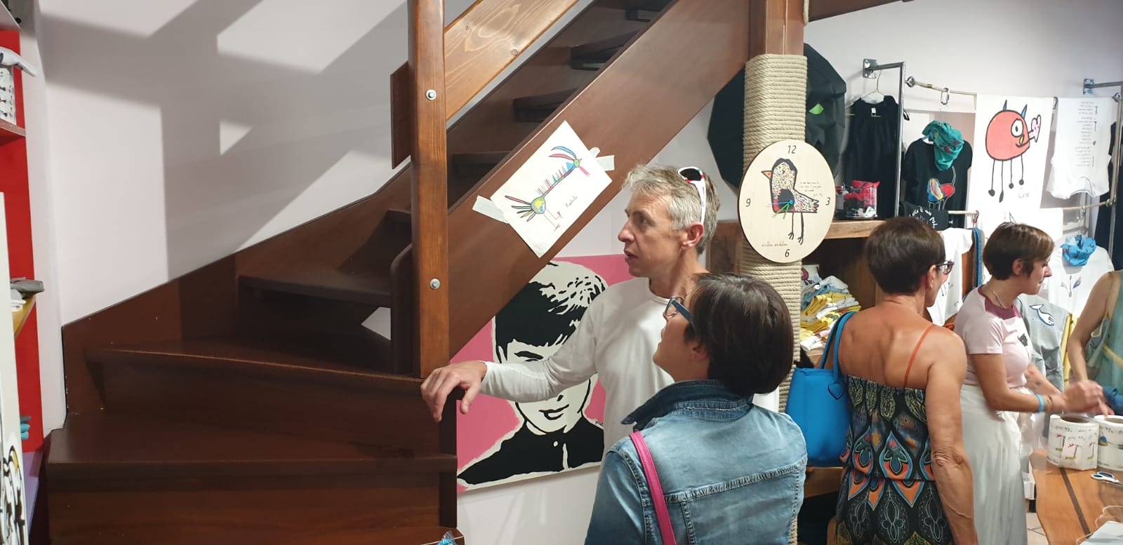 ad Omegna "il bugigattolo" il punto vendita di CreVi, creazioni di Vittoria. Vittoria vive sul lago d’Orta con un fratellino più piccolo e la sua mamma, Alessandra. Secondo il linguaggio medico la nostra piccola artista soffre di disturbi dello spettro autistico, ma i colori e i tratti dentro di lei viaggiano sempre in armonia. Per questo motivo piacciono a tutti. Vittoria ha cominciato a disegnare poco meno di tre anni fa, prediligendo la figura degli uccellini, animali liberi e pieni di colori ed energia che lei riesce ad esprimere molto bene. Sono così nati Querzel, Barbiglio, Gallo di Toscana, uccellino arcobaleno, Gallo di pollaio, Zampe lunghe, Ciuffo rosso e Zigo Zago. Disegni pieni di colori e vita, che hanno dapprima invaso l'auto di Alessandra, e che attraverso una frase pronunciata a sua cugina, Monica Bordes, "Ho la macchina piena di disegni di Vittoria, uccellini ovunque". Ha acceso l'idea di far spiccare il volo a questi uccellini attraverso delle t-shirt, un'iniziativa ottima, per raccogliere fondi da destinare alle cure di Vittoria con il nome: "CreVi", Creazioni di Vittoria. All'inaugurazione erano presenti anche l'Alpinista Cristina Piolini che con il suo progetto Eighthousand, porterà il logo Crevi sulla cima del Manaslu, 8.163 mt e se l'impresa riuscirà sarà la prima donna a scenderlo con gli Sci. Sci nati dalle mani di Fabrizio Fregonara, socio fondatore della Whitelandski di Alagna, che per l'occasione ha creato degli sci interamente logato CreVi. La spedizione prenderà il via il 30 agosto prossimo.