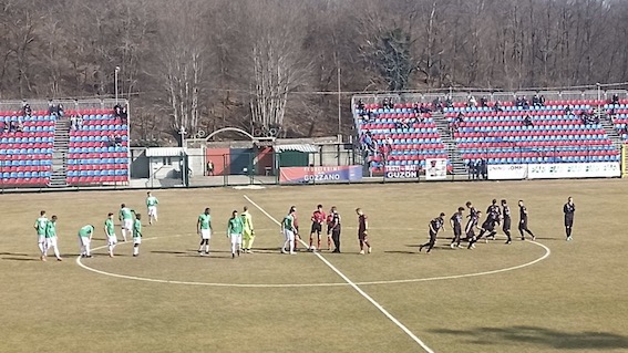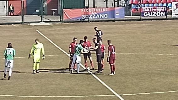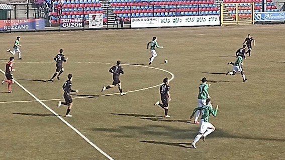 GOZZANO – 06-03-2022 -- Finisce 2-2 il derby tra Gozzano e RG Ticino, al termine di una partita a due volti. Nella prima ora, grazie a una rete per tempo il Gozzano si era portato sul 2-0, per poi subire il ritorno degli ospiti in grado di arrivare al pareggio in pieno recupero. Inizio abbastanza povero di episodi, se non un tiro fuori di Gassama dopo 3’, e uno di Puntoriere all’8° parato da Vagge. Poi al 19° Sangiorgio si vede ribattere la conclusione dalla difesa e al 21° è Cozzari a calciare alto. Passano tre inuti e lo stesso Cozzari centra per Rao che da pochi metri fulmina il portiere ospite Oliveto per il vantaggio dei cusiani. Al34° Battistello cade in area del Gozzano e reclama il rigore, ma l’arbitro fischia simulazione. Al 41° Rao calcia sull’esterno della rete. Ultima emozione al 43° con un tiro di Lionetti deviato in angolo. Il secondo tempo inizia con una gran conclusione dello stesso Lionetti da trenta metri che esce di poco alla destra di Vagge. Poi è Sansone a calciare da distanza ravvicinata mettendo a lato. Al 59° il raddoppio del Gozzano: Nicastri recupera palla in difesa e si fa tutto il campo seminando gli avversari, mette in mezzo per Gassama che appoggia appena fuori area per Pennati, entrato da pochi secondi che al volo batte nuovamente Oliveto. Il tempo di ripartire che Sansone si ritrova libero in area rossoblù e può accorciare le distanze. Non succede quasi più nulla fino al 90° quando l’arbitro, signor Recchia di Brindisi, assegna 4 minuti di recupero. Un leggero infortunio a Sangiorgio blocca però il gioco per circa un minuto e il direttore di gara fa proseguire fino al 95° poi guarda ostentatamente l’orologio senza fischiare. L’RG Ticino è in possesso di palla e con ogni probabilità l’arbitro decide di far terminare l’azione e sul cross della disperazione il capitano della formazione di Romentino Longhi è lesto a colpire di testa e a battere Vagge per il definitivo 2-2. Finisce così senza nemmeno ripartire dalla metacampo tra le contestazioni del Gozzano in campo e sugli spalti. (FAB)