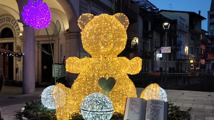 Significative le due installazioni che spiccano in centro città -una mezzaluna e un orsacchiotto con una viola- che sono un chiaro omaggio a Gianni Rodari.