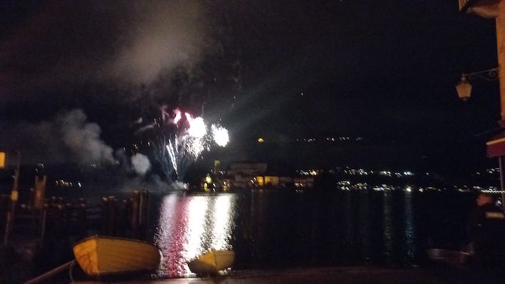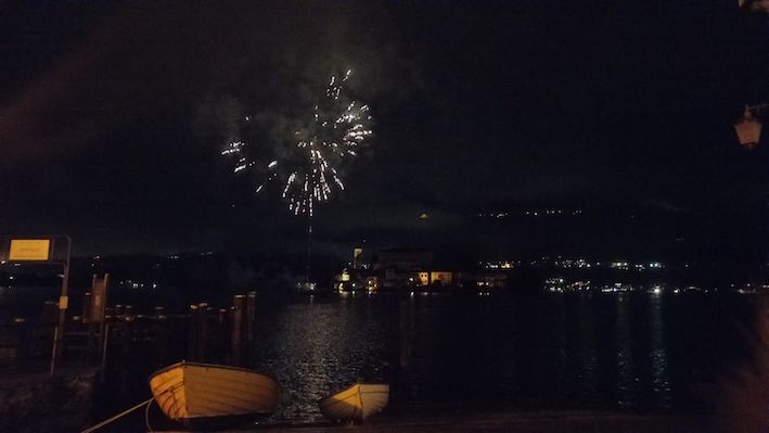 ORTA SAN GIULIO - 01-01-2024 -- Come ogni anno, nonostante il meteo uggioso, la festa di fine anno in piazza Motta ha attirato tantissimi visitatori che hanno riempito la piazza e i parcheggi di tutto il circondario. Come di consueto aspettando la mezzanotte sotto il palazzotto una band ha intrattenuto e fatto ballare con i più grandi successi delle scorse decadi finchè, scattata la mezzanotte, è cominciato lo spettacolo pirotecnico di fronte all'isola di San Giulio. Emozionante come sempre in una location suggestiva, quest'anno impreziosita dall'illuminazione curata dal Distretto dei laghi. Al termine ancora festa con musica e possibilità, al primo piano del vecchio comune, di visitare la mostra dei presepi di Loda.