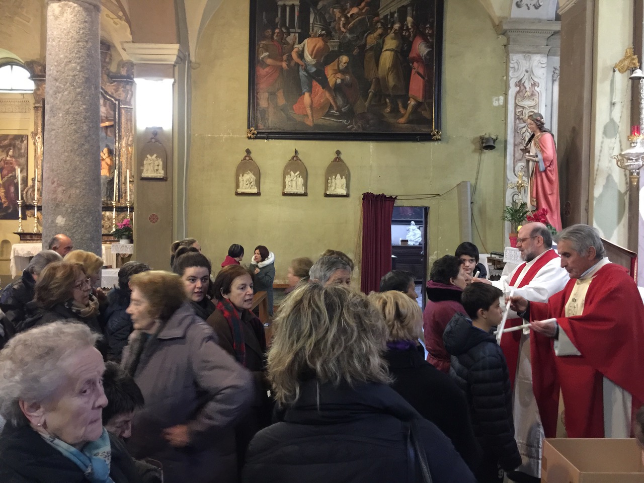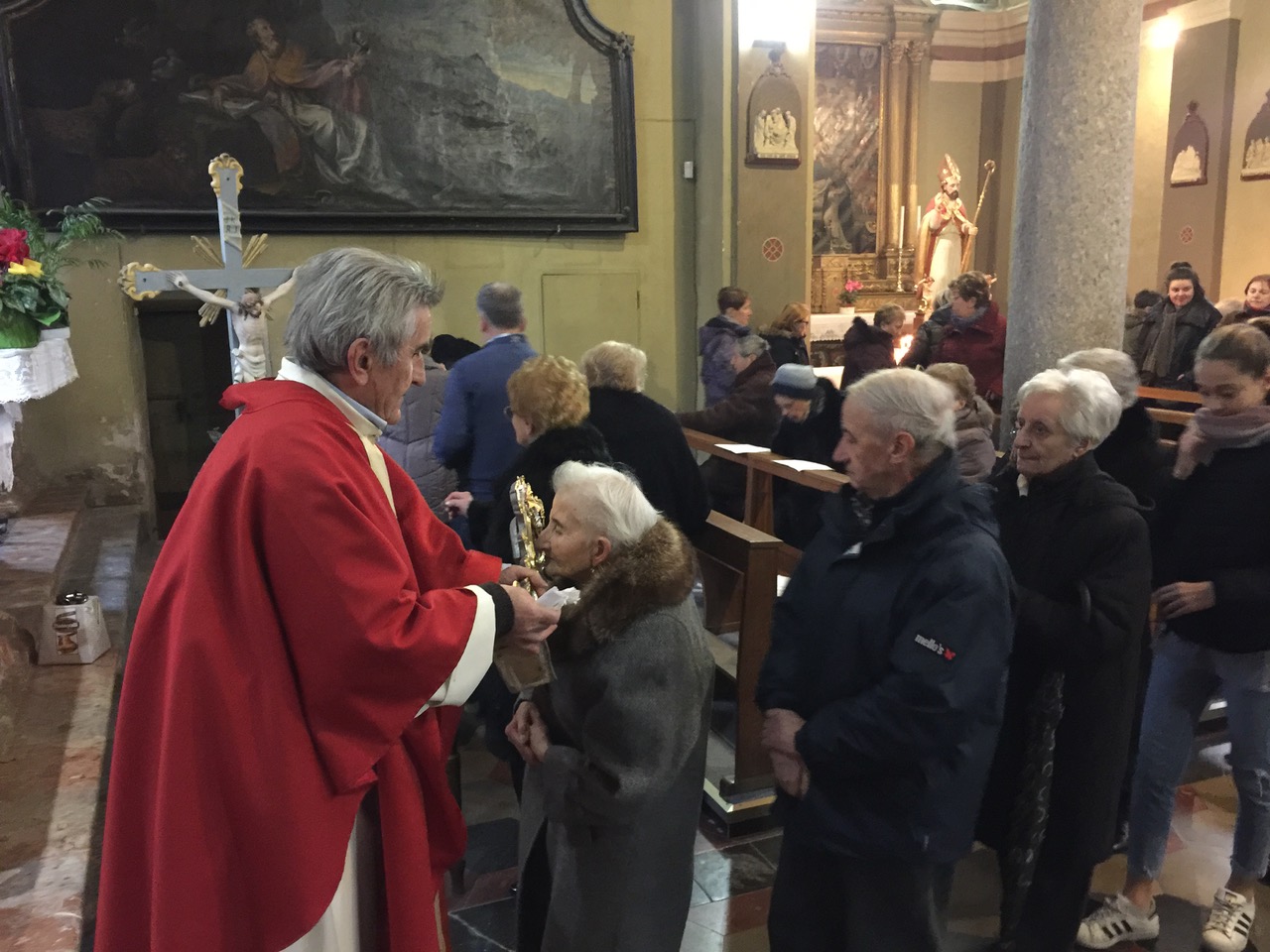 NONIO - 06-02-2017 - Una festa patronale bagnata quella svoltasi venerdì 3 febbraio. Purtroppo le previsione meteo non hanno dato scampo, la pioggia fin dalle prime ore ha funestato la giornata di festeggiamenti religiosi. Durante la mattinata la comunità si è riunita in chiesa parrocchiale per assistere alla messa, officiata da don Rino Geddo coadiuvato da don Ugo Peretti ed allietata dalla corale di San Biagio. Durante il momento liturgico i presenti hanno potuto baciare la reliquia e farsi benedire la gola, come da tradizione; infatti, San Biagio, vescovo di Sebaste, è ricordato proprio per aver salvato dalla morte certa un bambino a cui si era incastrata una lisca di pesce in gola. Durante il pomeriggio si sono svolti i solenni vespri, come di consueto tenuti da don Geddo e don Renato Sacco, dove anche in questo caso i fedeli hanno potuto baciare la reliquia e benedire la gola. La tradizionale processione molto sentita dai noniesi, a causa della pioggia non si è potuta svolgere, per garantire la sicurezza di tuti. Ultimo momento religioso della giornata è stata la santa messa delle 18, che a permesso a chi vive o lavora lontano di partecipare alla festa della comunità. Qui la video intervista don Rino Geddo. (S.P.)