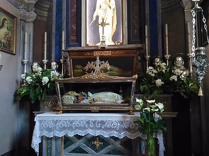 GERMAGNO-01-06-2017- Un arco verde trapuntato di muschio annuncia la festa di Santa Grazia. E’, più precisamente la porta di Santa Grazia, come la chiamano gli abitanti di Germagno, primo comune della Valle Strona che si incontra salendo da Omegna. Loro ogni 25 anni si impegnano per costruirla. Il muschio un tempo si recuperava dappertutto invece adesso bisogna acquistarlo. Quest’anno arriva dalla Valle di Lanzo ed è sistemato su una struttura in ferro e legno. Ci hanno lavorato professionisti supportati dai volontari del paese. Tanto tempo dedicato alla comunità ma che si fa volentieri perché la tradizione è ancora viva, va mantenuta e va trasmessa alle nuove generazioni. “L’ultima” porta risale al 1948. Vi restò sino al 1949 dato che in valle vi era il pellegrinaggio della Madonna Pellegrina che attraversava, appunto, tutta la valle. Un appuntamento importante e la comunità di Germagno non arrivò impreparata. L’attuale porta resterà sino a settembre perché la prima domenica del mese è la festa della Madonna delle Grazie a cui è dedicata una piccola chiesa che si trova all’inizio del paese. Dell’edizione del ’48 sono conservate la croce che si trova sulla sommità mentre la scritta, sottostante, è stata modificata. Ma chi era questa Santa e come arrivò a Germagno? Santa Grazia è una martire che venne tumulata nella catacombe romane di Santa Ciriaca. Le sue reliquie furono traslate ben 175 anni fa e portate nel piccolo paese nel mese di marzo, precisamente il giorno 14, dell’anno 1842. Era periodo di Quaresima e quindi non fu possibile inserire la data come giorno di festa. Venne rimandata a giugno, precisamente la prima domenica del mese. Da allora Germagno custodisce le reliquie da sempre, nella statua realizzata appositamente, celebra il giorno 14 ma festeggia a giugno, come stabilito. Le operose mani delle suore benedettine dell’isola di San Giulio hanno sistemato e pulito la teca (urna) in vetro in cui giace la statua, minuziosamente ricostruito le parti che compongono le vesti e la struttura per fare in modo che fosse pronta per il 26 maggio, giorno in cui sono iniziati i festeggiamenti religiosi. Sabato 27 si è svolta la benedizione della porta, con l’urna della santa uscita dalla chiesa della Madonna delle Grazie e accompagnata dalle confraternite maschili e femminili sino alla parrocchiale. Domenica 4, la prima domenica del mese, ci sarà, alle 16, nuovamente la processione per le vie del paese con l’urna, l’arrivo sino alla chiesa della Madonna delle Grazie, senza dimenticare e il passaggio sotto la porta- arco, realizzata appositamente e il ritorno in parrocchia. Sono state invitate le confraternite di Fornero e Loreglia, oltre ovviamente a quelle del paese, i parroci della Valle Strona e dei comuni limitrofi e le donne in costume di Forno. Prima della processione i vespri, al termine dei quali vi sarà l’incanto delle offerte e l’estrazione della lotteria. Una consuetudine, la lotteria, inserita solo di recente. Accanto al programma religioso si affianca la festa popolare con eventi vari riferiti anche al recupero degli affreschi nella parrocchiale, relativi a San Bartolomeo, nascosti da uno spesso strato di vernice che solo un paziente lavoro ha ridato alla luce. Questa sera musica con i “The Blue Roodsters”. Domani sera, venerdì, alle 20,30 nella parrocchiale è attesa una rassegna di cori. Seguirà alle 21.30 spettacolo di video-mapping con giochi di luce e suoni, sempre nella piazza della chiesa, a cura di Electric land. Sabato alle 19.30, apertura del bar e ristorante con maxi schermo per vedere la finale di Champions League. Seguirà il concerto degli Zenzero Band”. Domenica, giorno delle festa, pranzo comunitario alle 12.30, concerto bandistico con la filarmonica “L’Alpino” di Massiola, alle 15.30. (l.p.)