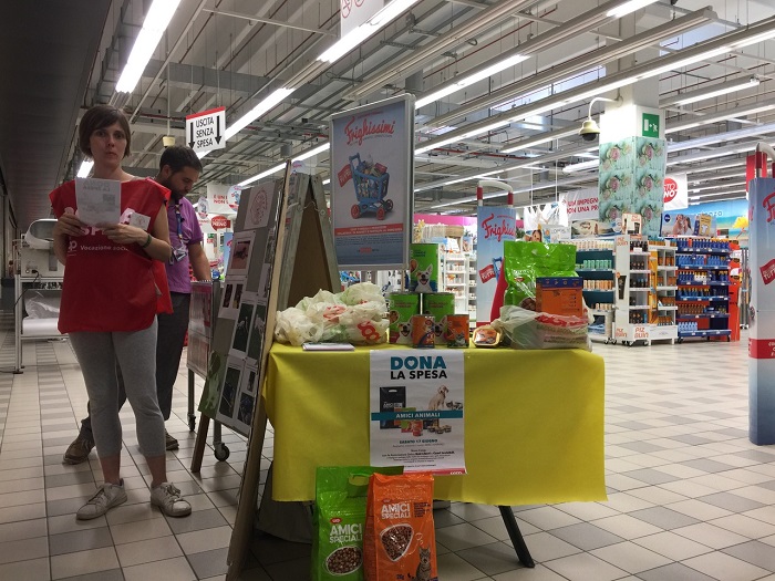 GRAVELLONA TOCE - 18-06-017 - Prima edizione della raccolta alimentare a livello nazionale per gli amici a quattro zampe nei supermercati ed ipermercati Coop, denominata “Dona la spesa - amici animali”. Durante l’intensa giornata di ieri, a Gravellona, due associazioni, “Cuori invisibili” e “Nati liberi” con l’aiuto dei soci del presidio hanno sensibilizzato gli avventori del centro commerciale alla causa. A conclusione della giornata le associazioni si sono dette più che soddisfatte della raccolta e dell’attenzione dei clienti. Tra le curiosità della giornata c’è da sottolineare l’interesse di “prima zampa”, di alcuni cani che da alcuni mesi possono entrare nel centro commerciale grazie ad appositi carrelli: in particolare la giovanissime “Happy” che ha badato al cestone delle donazioni assieme alla sua padroncina. Tra i prodotti più donati croccantini, zuppe, ma anche alimenti specifici per cani anziani o altri per prodotti per mantenere sane le gengive dell’animale. L’appuntamento è fissato all’anno prossimo. (S.P.)