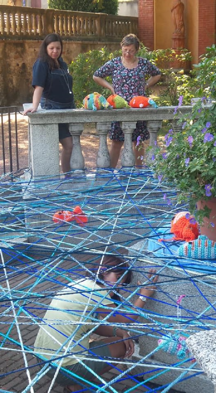 condividere un sapere che piano piano va scomparendo fatto di lana, cotone, fettucce e fili, uncinetti e ferri da maglia. Punto basso, punto alto, catenella, maglia rasata,coste e trecce, tecnica amigurumi ecc. fino ad arrivare alla sperimentazione con attrezzi tipo forcella e uncinetto tunisino. Sono le “Tricottine” e abitano ad Ameno. Nel gennaio del 2016 su sollecitazione dell’associazione Asilo Bianco, nel corso di un incontro si è deciso di partecipare come gruppo locale, all’evento Studi Aperti Anno 2016. Ed ecco le piante del parco Neogotico abbracciate da mani e braccia di lana e le colonnine della piazza protette da tanti vestiti colorati: una vera e propria Yarn Street Art. E poi una serie di manifestazioni dalle più frivole alle più impegnate come la bellissima serata organizzata il 25 novembre scorso per la giornata contro la violenza sulle donne, di cui è stato fatto anche un dvd. L’attività delle “Tricottine” è proseguita in vista del Natale, con addobbi ad Ameno e in altri paesi che hanno chiesto il loro contributo. Quest'anno il progetto estivo si chiama "Intrecci tra acqua e aria". Non a caso la fontana è stata riempita di catenelle con colori che spaziano dal celeste al blu, dall'azzurro al turchese con tanti piccoli pesciolini tutti rigorosamente fatti a mano con la tecnica tridimensionale. Mentre l'aria è rappresentata dalle ragnatele con ragni sospesi nell'aria oppure aggrappati alle loro ragnatele. Le istallazioni meritano una visita. Domani sera, venerdì, alle 18, ci sarà un aperitivo proprio nel parco Neogotico per brindare insieme alle organizzatrici. Maggiori informazioni si possono trovare anche sulla pagina facebook. Tra i gomitoli spuntano i prossimi progetti: uno è inerente la lana. Dal recupero presso i pastori che oramai devono smaltirla perché non viene più utilizzata, al lavaggio al lavatoio, alla cardatura,per arrivare alla filatura e poi alla lavorazione. Con l’aiuto di qualche esperta del settore, questo sarà argomento delle prossime spettacolari iniziative firmata “Tricottine”. Una volta capito come funzionano i vari procedimenti sarà loro intenzione proporla alle varie scuole e vedere di farne un progetto sociale. Intanto, per non rischiare di restare “con le mani in mano” l’attivo gruppo sta sferruzzando per organizzare la seconda edizione della giornata contro la violenza sulle donne.