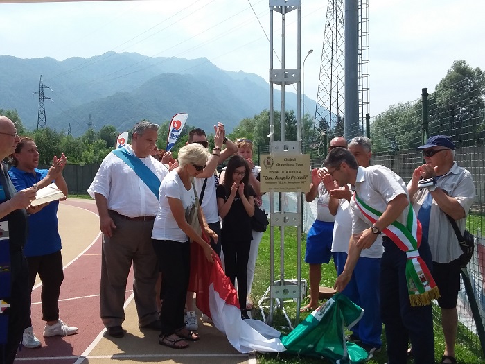 e fondatore del “GSH Sempione 82”, scomparso alcuni mesi fa, la pista di atletica dello stadio “Boroli”. La cerimonia di intitolazione della pista di atletica a Petrulli si è tenuta lo scorso fine settimana alle 12.30 al termine della seconda prova teritoriale del campionato di società Fispes e la seconda prova territoriale della coppa Italia sempre Fispes organizzato dal "Gsh", in presenza di numerose società sportive cittadine, personalità dello sport e della politica locale e piemontese. A scoprire la targa di intitolazione della pista con il primo cittadino Gianni Morandi, il parroco don Franco Bricco, c’erano il vice presidente della Regione Piemonte Aldo Reschigna, il sindaco di Pallanzeno, Gianpaolo Blardone, il presidente dell’associazione di Panathlon Rino Porini, l’attuale presidente del Gsh Sempione Elisabetta Saccà e molte le personalità del mondo dello sport del Piemonte. “C’è voluto meno di quanto temevo -ha dichiarato Morandi nel ricordare la figura dell’ex presidente degli atleti disabili del Vco-per ottenere l’autorizzazione ed intitolare la pista di atletica ad Angelo. I nostri atleti -ha commentato emozionata il presidente Saccà- quando verranno qui ad allenarsi o a gareggiare nella pista intitolata al nostro indimenticabile presidente, sono sicura che avranno stimoli maggiori per proseguire sulla strada avviata da Angelo”. Sono stati una quindicina gli atleti con disabilità fisici che hanno gareggiato al Meeting di San Pietro e circa una sessantina i disabili intellettivi che hanno preso parte alla cerimonia di intitolazione. (G. P. C.)