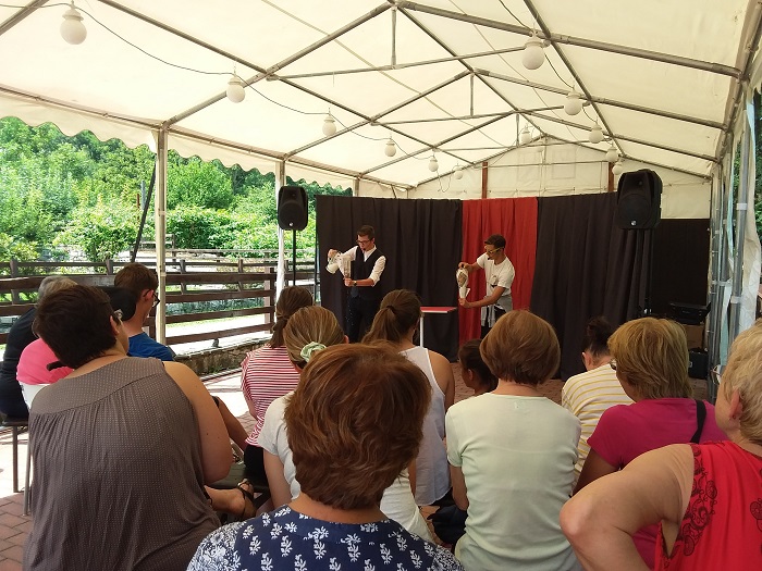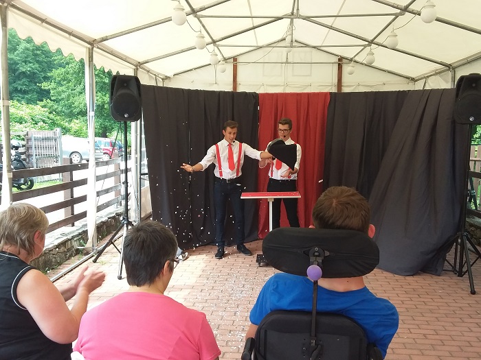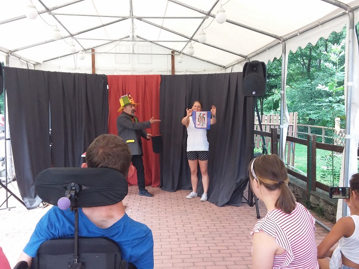 GRAVELLONA TOCE- 12-07- 2017- I giovani prestigiatori del club gravellonese di Arte&Magia, crescono per bravura e qualità nelle loro perfomance di spettacolo in spettacolo. Ospiti del centro estivo del progetto Ametista nel pomeriggio di mercoledì 12 luglio ( il centro estivo è iniziato lunedì presso l’area dell’associazione Inaria in località la Frana a Pedemont), con la loro performance e perle di “magia” hanno regalato per circa un’ora, quanto è durato lo spettacolo, gioia e tanti sorrisi ai ragazzi disabili. Terminato lo spettacolo tutti insieme, ragazzi, esperti, assistenti e i giovani prestigiatori, sotto il tendone è stata distribuita la merenda. Il centro estivo si concluderà venerdì 14 luglio, con una cena benefica nel ristorante dell’associazione Pedemonte, il cui ricavato sarà destinato a sostenere le attività del progetto Ametista. Al termine dell’incontro conviviale di venerdì sera, si terrà un concerto della band “Allegro-Moderato”, gruppo musicale già noto sul territorio tocense, composto da ragazzi disabili di Milano. Allo spettacolo concertistico musicale, peraltro, unico nel suo genere, è invitata a partecipare tutta la comunità gravellonese. (G.P.C.)
