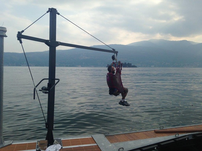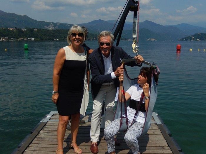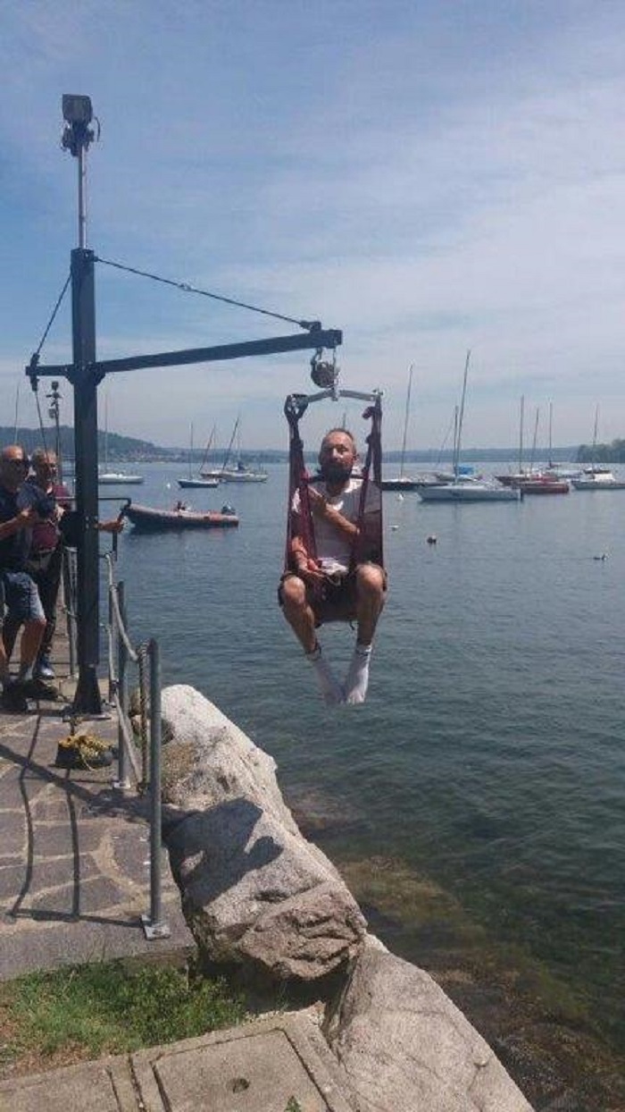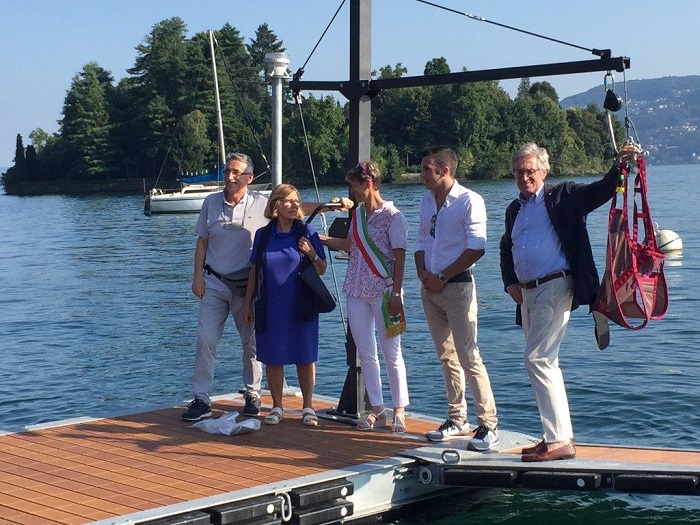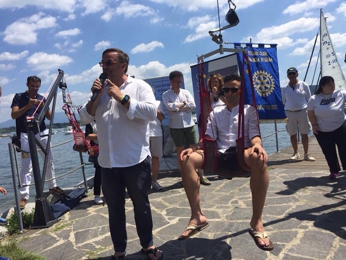 OMEGNA- 23-07-2017-Nel porticciolo del golfo cittadino fa bella mostra sé un nuovo sollevatore. Si tratta di un attrezzo necessario per sollevare le persone che hanno problemi di deambulazione e che vogliono salire a bordo di un’imbarcazione. L’impianto è stato realizzato tramite il progetto DiversamenteLago, un service a cura delle sezioni Rotary Club, più precisamente Rotary Club del Lago Maggiore uniti in un ambizioso progetto contro le barriere dell’handicap, con l’obiettivo di aiutare chi ha disabilità o difficoltà motorie. A questo gruppo si è aggiunto anche il Rotary club Orta San Giulio che ha permesso di sistemare tre sollevatori anche sul lago d’Orta. Oltre a Omegna anche il lido di Buccione, a Gozzano, ne ospita uno, presso il pontile galleggiante e presto anche la città di Orta, in località Bagnera. Il progetto nel suo complesso è costato 33mila euro. Gli impianti sistemati a bordo lago permettono l’accesso alle persone con difficoltà motorie, su imbarcazioni di qualunque tipo. Omegna attualmente non dispone di una rampa di accesso decente per arrivare al sollevatore. Il progetto però esiste, come ha precisato Stefano Strada, assessore ai Lavori Pubblici, presente all’inaugurazione avvenuta lo scorso venerdì. “Andrà rivista perché è distante dal punto dove si trova il sollevatore. Affronteremo l’argomento con il gruppo barriere architettoniche, creato durante la Giunta Quaretta, che collabora con la IIª Commissione consigliare Lavori Pubblici”- ha spiegato. Con lui vi era anche il sindaco Paolo Marchioni, gli assessori Mattia Corbetta, Sabrina Proserpio, Francesco Perrone, alcuni consiglieri comunali e il consigliere Giuseppe Formigoni di Fratelli d’Italia che si è prestato per testare l’imbragatura necessaria per essere calati con il sollevatore nell’imbarcazione. Vi era poi il presidente del Rotary club Borgomanero Arona Carlo Paolo Frattini che ha personalmente mostrato la funzione del sollevatore e Andrea Vigna, presidente della Uildm di Omegna. L’imbragatura, essendo realizzata con materiale molto delicato, e le strumentazione necessaria per collegarla saranno gestiti volontariamente da un privato cittadino che ha attività a bordo lago. Per una migliore funzione è stata attivata anche un app scaricabile gratuitamente da Google Play Store o App Store (digitando Diversamentelago) che consente di individuare con facilità gli approdi oggi più accessibili e quelli da ora dotati di sollevatori, con informazioni su servizi igienici, parcheggi e punti ristoro. I primi sollevatori sono stati già posizionati a Verbania Pallanza sul pontile di corso Zanitello, a Luino in via Dante Alighieri, ad Angera in viale Repubblica e ad Arona, lo scorso 18 giugno, in doppia versione, sul pontile. Anche Meina e Brissago saranno dotati di questo dispositivo. E infine, va precisato che il club Rotary di Gattinara ha partecipato. Pur non essendo sul lago, ha aderito al progetto, posizionando un’altalena per disabili nel parco giochi di Gattinara. Da qui l’idea di mappare e inserire nella App anche i luoghi di divertimento ove siano a disposizione giochi fruibili anche da parte di ragazzi disabili.