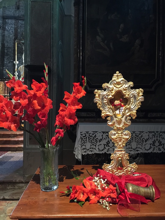 CESARA - 07-08-2017 - Da sabato 5 a martedì 8 agosto si sono svolti i festeggiamenti patronali di Sant’Apro. Sabato dopo apertura della cucina in piazza Marconi si è ballato con l’orchestra “Fred e gli Elegant”. Domenica 6 si sono svolti i momenti religiosi dove la comunità si è riunita dapprima per la messa delle 11 presieduta da don Giorgio Borroni direttore della Caritas e del centro missionario e coadiuvata dal parroco, don Renato Sacco. Nel pomeriggio attorno alle 17 don Renato Sacco ha presieduto la preghiera comunitaria, officiando la santa messa con la stola ricevuta in dono da Don Angelo, prete missionario in Cambogia raffigurante un Gesù crocifisso con una gamba più corta a testimonianza di come questa nazione sia flagellata da mine antiuomo. Durante l’omelia il sacerdote ha ripercorso l’agiografia di San Apronio, soldato divenuto martire e simbolo dei martiri di ieri e di oggi ricordando la strage di Hiroshima o l’esodo del popolo del nord Iraq ad opera dell’Isis che ha coinvolto 100 mila innocenti. A causa della pioggia che ha bagnato il terreno durante la celebrazione religiosa è stata sospesa la processione per le vie del paese, permettendo solo la sfilata finale della Nuova filarmonica Omegnese dalla chiesa a Piazza Marconi. Alla sera, Paolo Drigo, famoso cantante trasformista, ha incantato grandi e piccini con le sue interpretazioni. I festeggiamenti sono continuati lunedì 7 agosto alle 15 con “E’ qui la festa” giochi ed animazioni al campetto della chiesa con merenda e sorprese per tutti i bambini e alla sera con le danze dalla fisarmonica alla disco con il duo “Max e Pamela”. I festeggiamenti si sono concluderanno martedì 8 con il duo “L’una e l’altra band” le famose Luciana e Morgana e le hit di “Giampiero Ponte DJ”. (Samuel Piana)