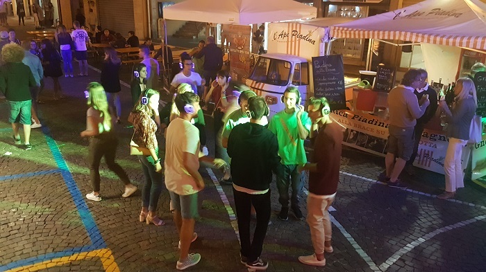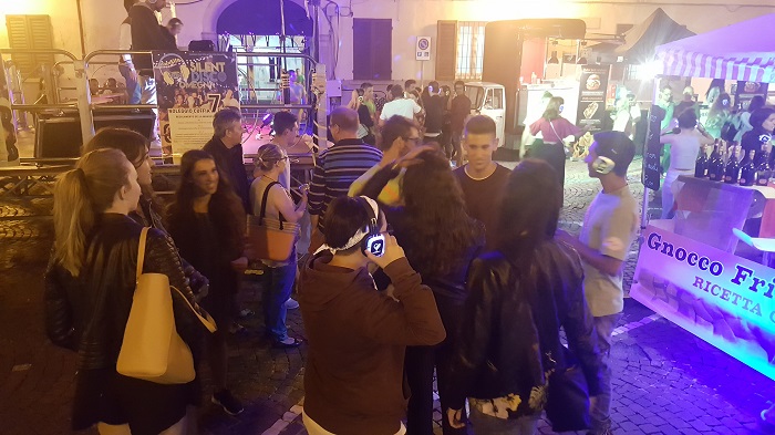 OMEGNA-23-08-2017- Ed è ancora San Vito Giovani in quel di Omegna con i volenterosi ragazzi organizzatori della kermesse dedicata ai ragazzi. “Credo che il gruppo di San Vito Giovani e di ‘Quei Bravi ragazzi’ meritino un applauso” ha scritto l’assessore Sabrina Proserpio su Facebook in riferimento alla serata di ieri ed entusiasta per la proposta anche l’assessore Francesco Perrone che, sempre sul social network, commenta: “San Vito è al passo con le iniziative del momento”. I partecipanti alla Silent Disco hanno potuto trascorrere una serata in piazza Mameli indossando le cuffie che, connesse con i mixer dei tre dj presenti, offrivano una selezione di ben tre diversi canali ed ognuno era libero di scegliere il preferito. Così ieri sera, arrivando nella piazza, si potevano trovare ragazzi che si scatenavano in danze anche sfrenate senza sentire assolutamente nulla proprio perché il mondo si trasformava nella discoteca indossando le cuffie. Stasera, il palco di piazza Mameli ospiterà i tre “Boobs Lickers” a partire dalle 22 circa che porteranno nella cittadina cusiana ritmi funk. L’evento della silent disco verrà invece riproposto nuovamente giovedì sera, sempre in piazza Mameli. (E.C.)