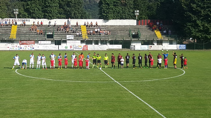OMEGNA-24-08-2017- Si è conclusa prima dei novanta minuti previsti l'amichevole di lusso che ogni anno l'Omegna Calcio disputa allo stadio Liberazione contro il Novara Calcio. Il risultato finale è stato 13-1 per la formazione ospite. Prima dell'inizio del match, il sindaco Paolo Marchioni ha consegnato un premio al direttore sportivo del Novara Calcio, Domenico Teti, e anche il mister Eugenio Corini ed il capitano Andrea Orlandini. Si è trattato del debutto stagionale per la formazione cusiana e dell'ultimo incontro per i novaresi prima dell'inizio del campionato. Il primo gol è arrivato al sesto minuto con Magnus Troest che ha iniziato la serie di gol che al doppio fischio dell'arbitro Cimmarusti di Novara era ferma a cinque con zero reti segnate dall'Omegna. Rinnovate per intero le formazioni, all'inizio del secondo tempo è stato dato spazio a numerosi giovani tra i diciotto ed i vent'anni che hanno offerto gran spettacolo. Per il Novara Alessio Sergio Da Cruz, classe 1997, ha messo a segno ben tre reti. Gol sono arrivati anche da Filippo Nardi, classe 1998, e Moutir Chajia, classe 1998. Il gol che ha entusiasmato il foltissimo pubblico del Liberazione è però arrivato al ventesimo minuto del secondo tempo quando Nicolas Gherardini, classe 1998 e calciatore dell'Omegna, ha messo a segno una rete che è stato qualcosa di più del cosiddetto "gol della bandiera" scatenando i migliori applausi dei tifosi. Applausi che sono arrivati anche al giovane portiere Luca Borella, classe 1999, che dopo uno scontro di gioco qualche minuto prima dello scadere del tempo è stato costretto ad uscire dal campo lasciando i guantoni a Morris Pastorelli, non potendo il titolare Chiaverini tornare in campo dopo esser stato sostituito. In meno di un minuto, Pastorelli in porta ha mandato la palla in calcio d'angolo con una parata che sfortunatamente è terminata contro il palo della porta e, costretto anch'egli ad uscire, l'arbitro ha infine deciso di concludere la partita. (E.C.)