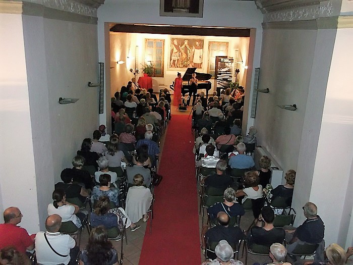 OMEGNA- 25-08-2017- Uno degli eventi che sta attirando un buon numero di persone, in questa edizione di San Vito, è quello con gli appuntamenti a Santa Marta dove è di scena la musica classica. Questa sera ultima serata con il quartetto d'Archi "The Palm Court Quartet" che proporranno il meglio del pop americano ed altri evergreen dal grammofono al grande schermo. Ieri sera, invece, di fronte ad una sala piena, si sono esibite Sabrina Dente e Annamaria Garibaldi, conosciute con Duo Maclè, con musiche al pianoforte suonate a quattro mani. Un programma di melodie classiche tratte dai brani di Sergej Rachmaninov, Maurice Ravel e George Gershwin. (d.z.)