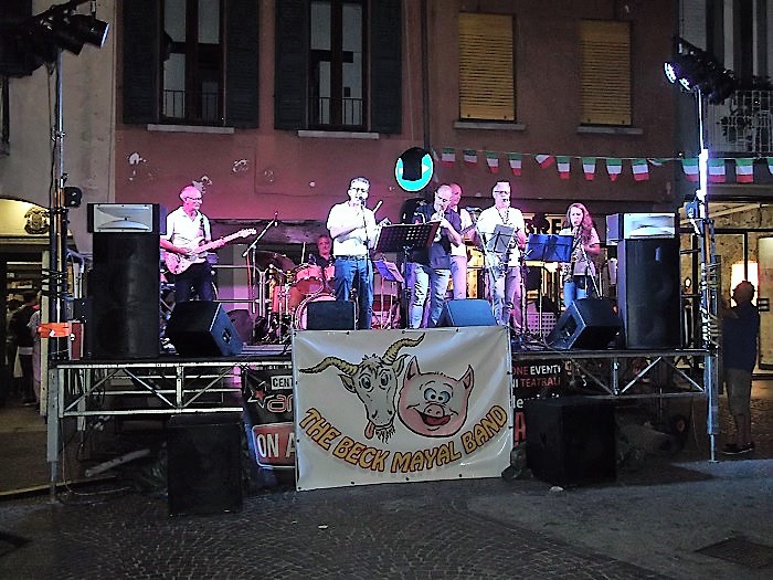 della città con ancora più di gente. Mario Venuti inizia il suo spettacolo dopo che don Gianmario Lanfranchini ricorda ai presenti gli appuntamenti di sabato e domenica (la processione e gli alpini su tutti) e non si ferma nemmeno quando qualche goccia cade dal cielo. La pioggia, seppur poca, costringe invece allo stop il concerto dei "The Beck Mayal Band" che in piazza XXIV Aprile stavano riscuotendo una buona dose di applausi. Nella piazza dei Giardini la Zumba spadroneggia e l'esibizione de L'Escuela de Balle Clave Soy Yo attira parecchie