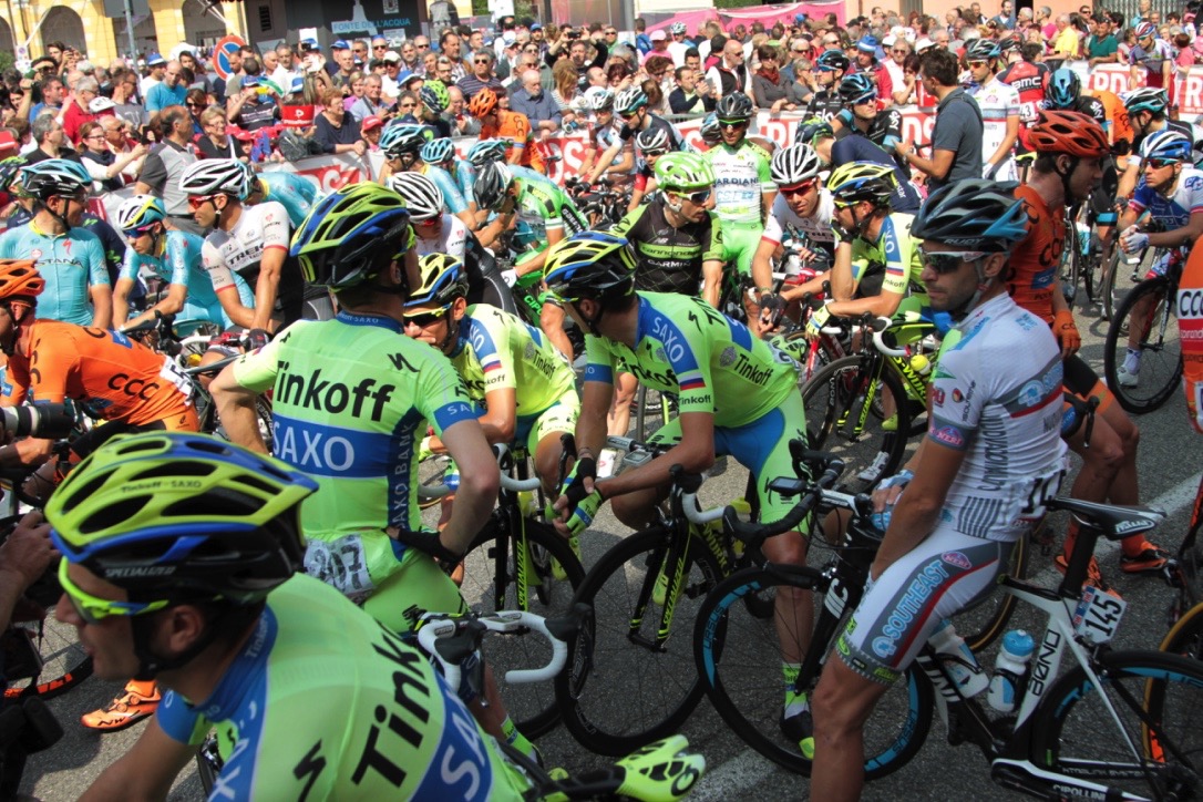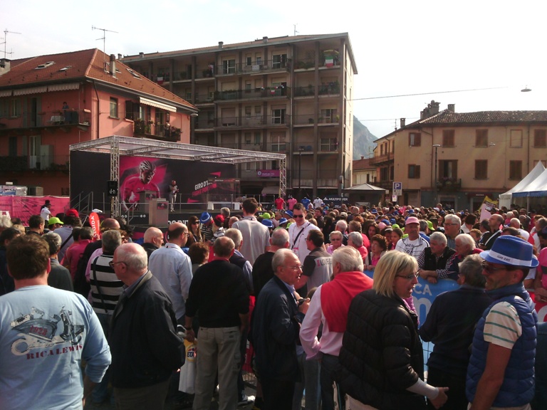 GRAVELLONA T. – 29.05.2015 – Dopo Verbania, Gravellona. È toccato al sindaco Giovanni Morandi, appassionato podista ma anche ciclista, dare il via ufficiale alla 19esima tappa del Giro d’Italia, la Gravellona Toce-Cervinia. Alle 10,55 da piazza Vittorio Veneto il gruppo è partito alla volta di Omegna (nel video un passaggio) lungo l’ex strada regionale del Lago d’Orta che lo condurrà verso il Biellese, il Canavese e la Valle d’Aosta. Prima c’è stato un bagno di folla per i corridori, accolti da un’ovazione alla pratica burocratica del foglio firma. Nonostante il giorno feriale anche Gravellona, come Verbania ieri, ha testimoniato l’affetto per la carovana rosa.