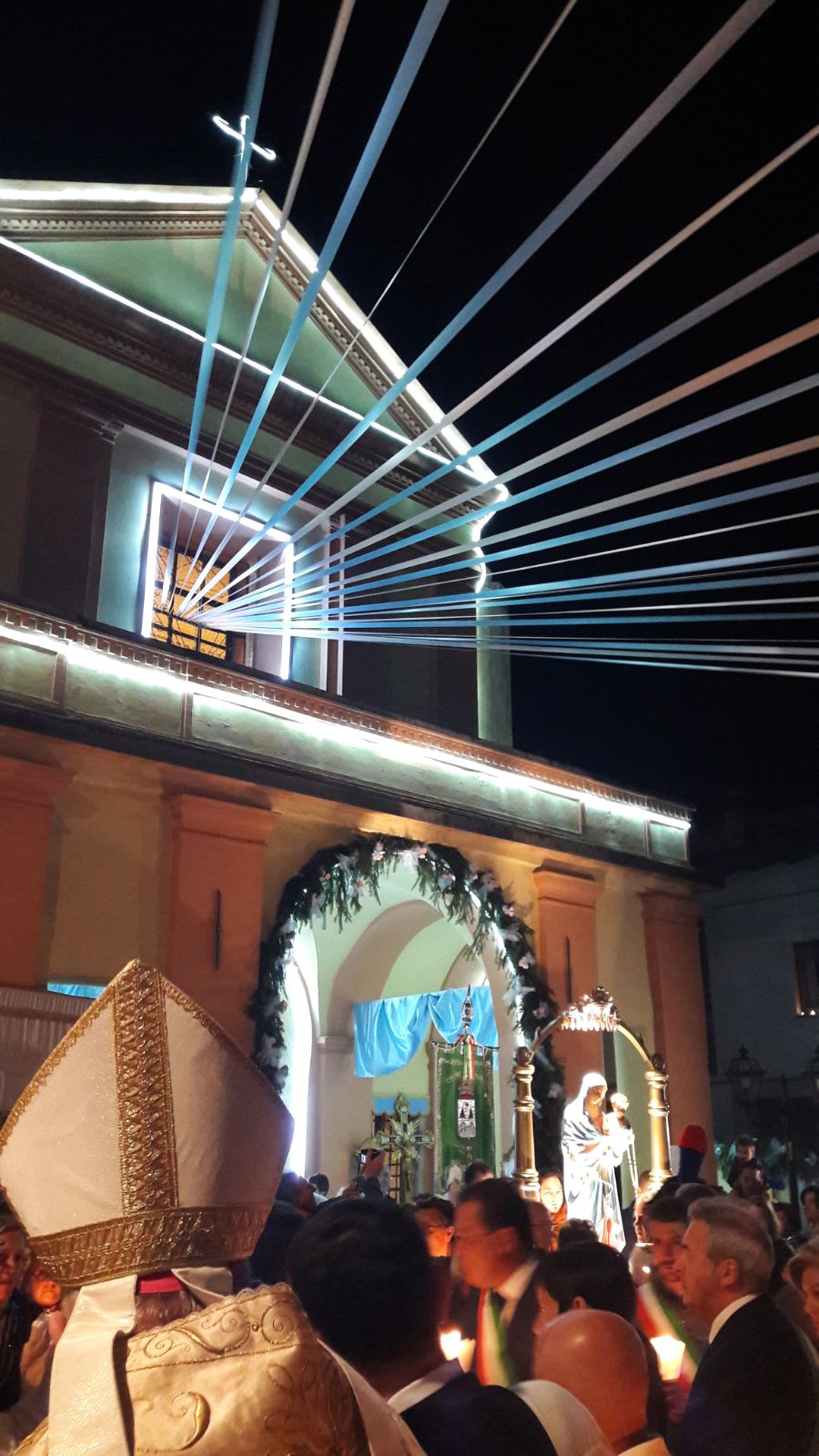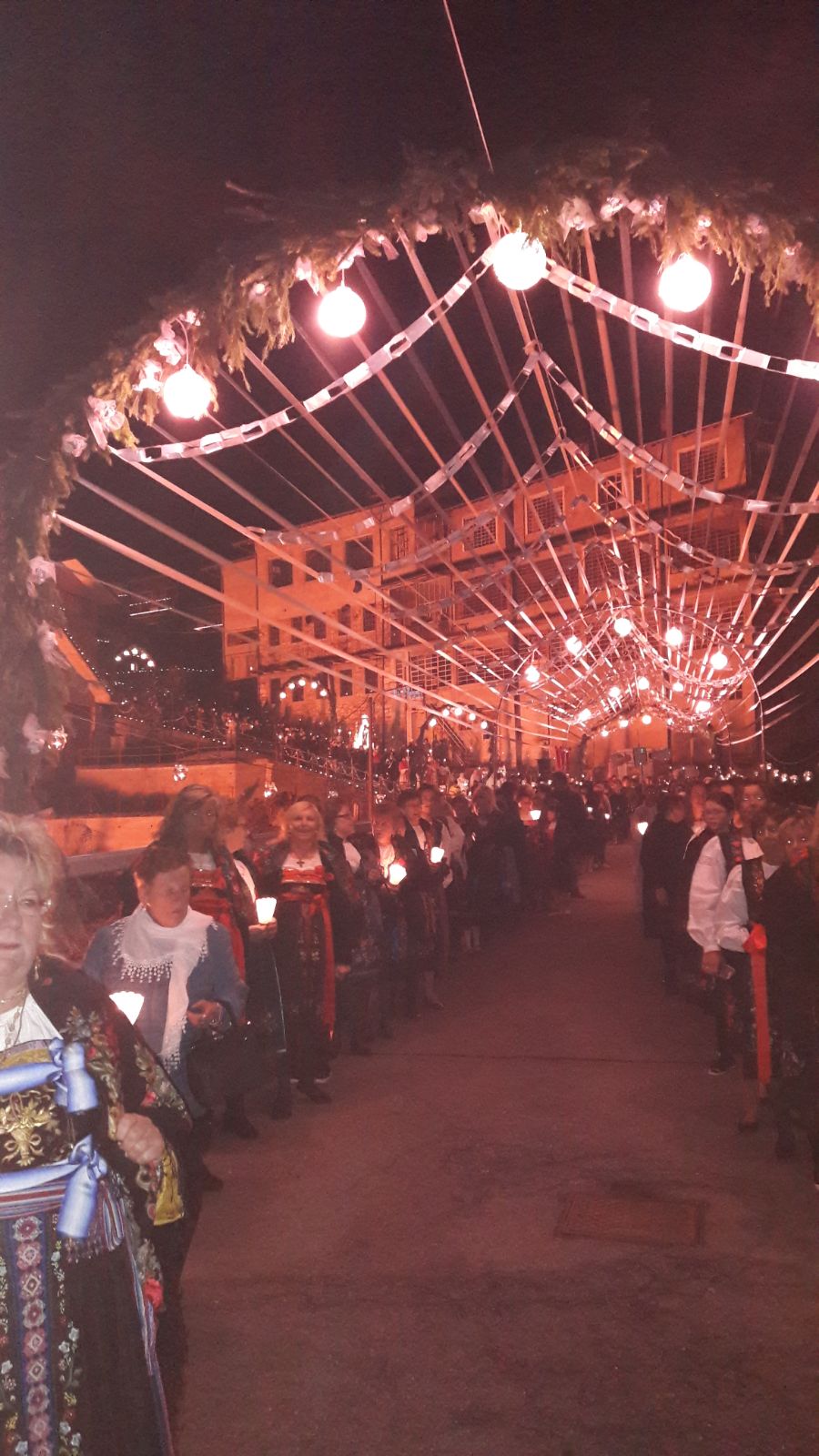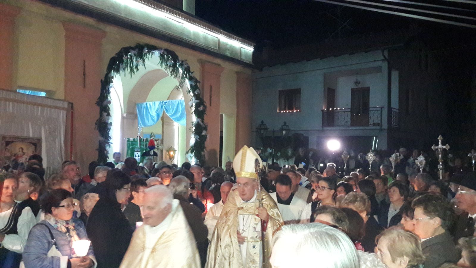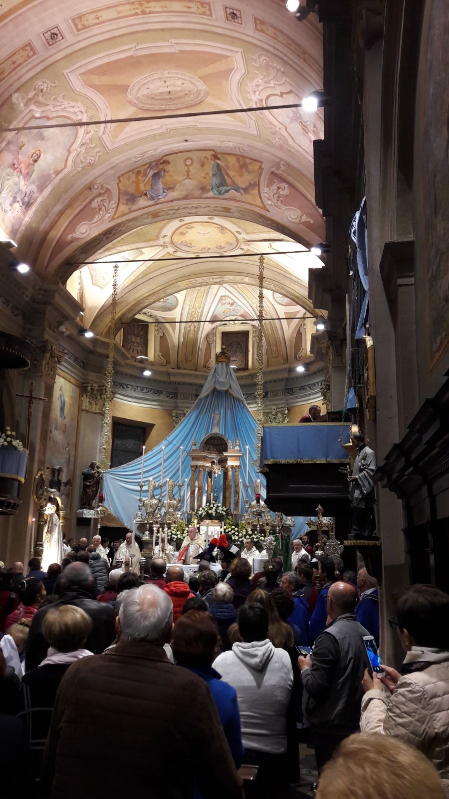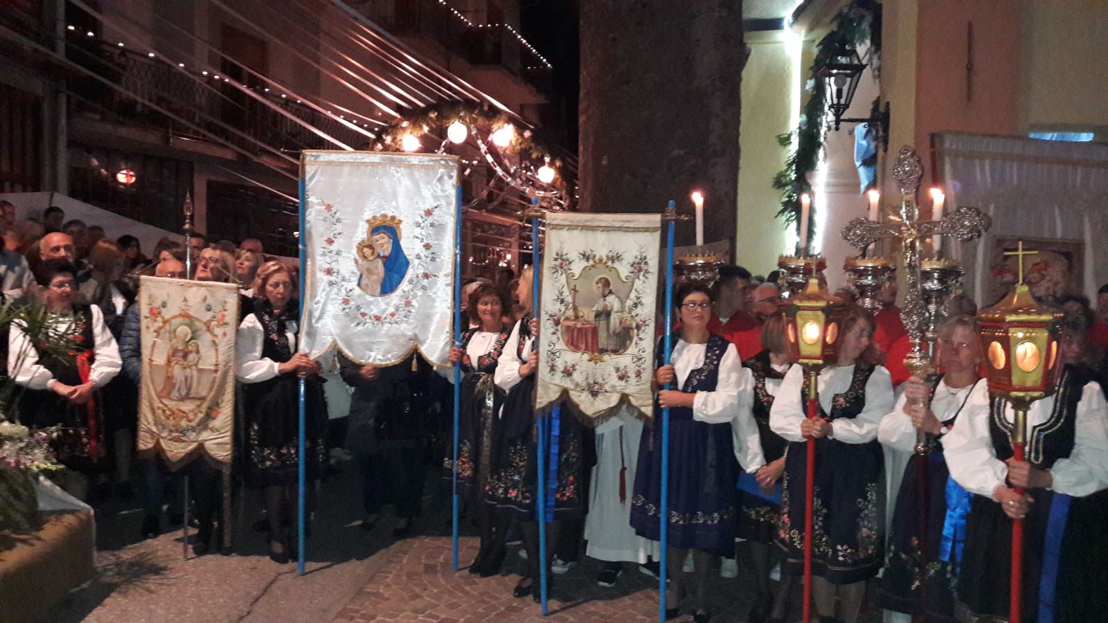 P. DI FORNERO-10-10-2017- Serata densa di raccoglimento ed emozioni quella dello scorso sabato 7 ottobre presso Piana di Fornero nell’ambito dei festeggiamenti quinquennali della Madonna del rosario. Alle 20.30, i fedeli hanno riempito ogni angolo della chiesa e del suo sagrato, alla presenza del corpo dei Carabinieri in alta uniforme. La messa è stata celebrata dal vescovo di Novara, monsignor Franco Giulio Brambilla, coadiuvato dai parroci locali e da don Gianmario Lanfranchini, vicario territoriale. Per permettere a tutti la partecipazione alla funzione è stato posto un maxi-schermo nella vicina piazza, creando un forte spirito d’unione e di preghiera che si è consolidato sempre più tra i presenti, rendendo tiepida la fresca serata autunnale. Al termine della messa, è avvenuta l’inaugurazione del nuovo manto del simulacro della statua della Vergine. Questa è stata poi incoronata, sotto ad una pioggia di petali bianchi, dando il via al lungo corteo che si è snodato da Piana di Fornero fino a Fornero in un percorso contorniato da circa trentamila lumini, posti come un lungo cordone di luce a segnare i profili di abitazioni e strade. Un colpo d’occhio magnifico ed una processione tra archi decorati con rami di pino, lanterne e lenzuola a delineare la via e, per finire, uno scoppiettante falò sulla riva del fiume Strona. La Madonna è stata accompagnata dai canti e dalle preghiere dei fedeli, tra cui numerose donne sfoggianti gli eleganti e preziosi costumi tradizionali, non solo della valle ma provenienti anche da altre località. La serata è stata accompagnata dalle note della banda "Santa Cecilia" di Fornero e dalla corale, alla presenza anche di alcune confraternite della diocesi. Per concludere al meglio la serata, un ghiotto rinfresco ha ristorato i fedeli.