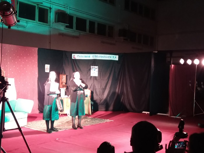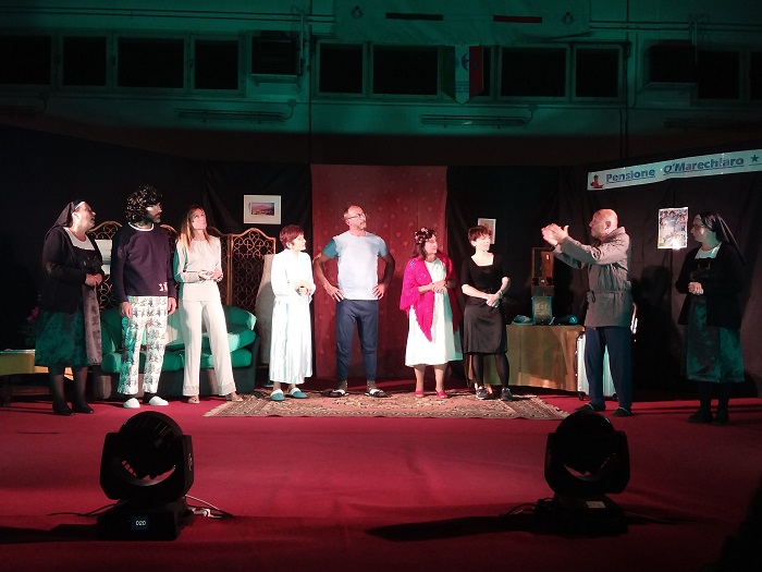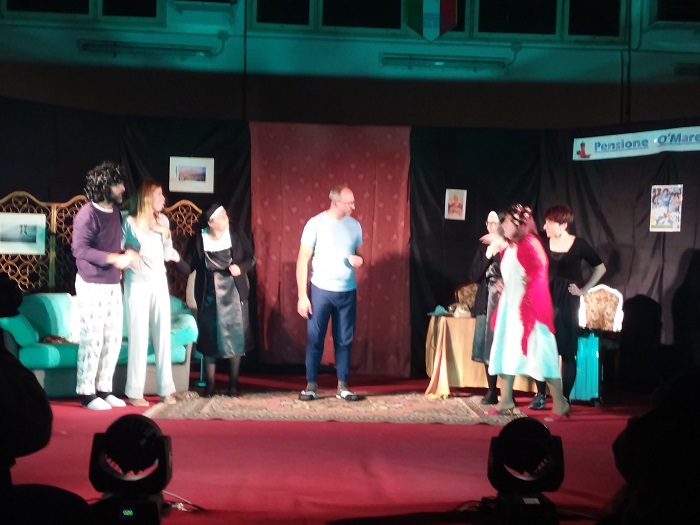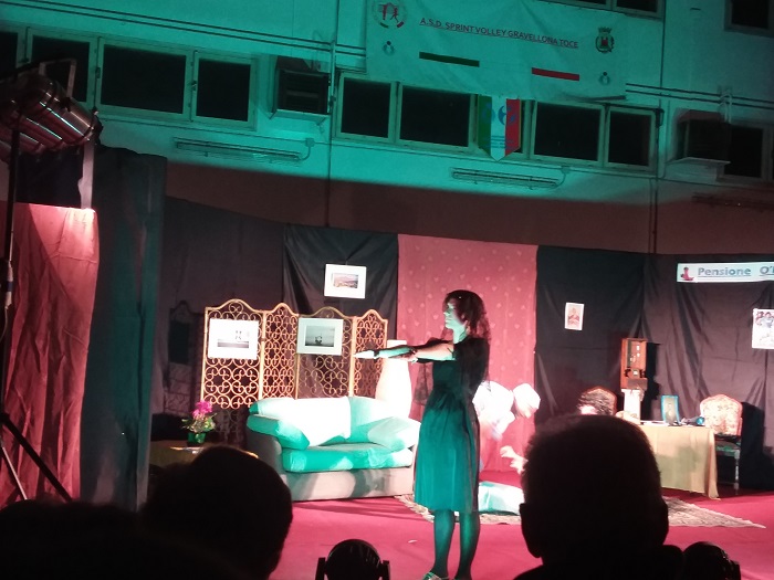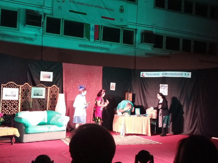 GRAVELLONA TOCE- 30-10-2017- Hanno risposto in gran numero le famiglie gravellonesi allo spettacolo “Pensione O'Marechiaro” portato in scena sabato 28 ottobre, nella palestra dell’istituto comprensivo Galileo Galilei di via Ing. Pariani dal gruppo teatrale “TNT CGS Arcobaleno”. Il gruppo teatrale gravellonese da molti anni non calcava la scena teatrale a Gravellona Toce anche se negli ultimi anni ha frequentato altri teatri della Provincia: Domodossola, Casale Corte Cerro e Ornavasso. Per quasi un ora e mezza, sabato sera ha regalato ai propri concittadini una straordinaria e splendida serata teatrale, contraccambiata da numerosi e ripetuti scrosci di applausi dei gravellonesi. L’appuntamento con il gruppo teatrale “TNT CGS Arcobaleno”, faceva parte del programma di eventi del 25esimo edizione di “Ottobre culturale gravellonese”. Nel presentare l’appuntamento la serata dedicata al teatro, ha riferito l’assessore alla cultura Roberto Birocco: “Come potevamo non invitare alla rassegna di “Ottobre culturale gravellonese”, il gruppo teatrale della nostra città “TNT CGS Arcobaleno” che, per decenni ha messo in scena e rappresentato il teatro dialettale gravellonese”. Sono state molte le persone che al termine dello spettacolo, hanno voluto congratularsi con gli attori, per la loro bravura interpretativa dei personaggi e il messaggio trasmesso dalla commedia. Numerosi ringraziamenti e complimenti ai bravissimi interpreti gravellonesi, sono giunti anche attraverso la pagina di facebook. Ad interpretare i personaggi 5 uomini e 6 donne, della commedia teatrale in due atti sono stati: Gennaro il locandiere (Gigi Bedasi); Addolorata (Chiara Bedasi); Crocifissa (Marina Zanetta); Mario (Gualtiero Rondena); Carla (Sandra Calderoni); Prof Caracciuolo (Alvaro Zanetti); Contessa De Santis (Marilena Degrate); Suor Teresa (Ivana Tosi); Suor Angela (Alessia Falavigna); A Stia Nat (Luca Forcina) e Abel Aziz (Manuel Baldioli).