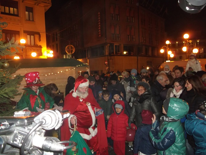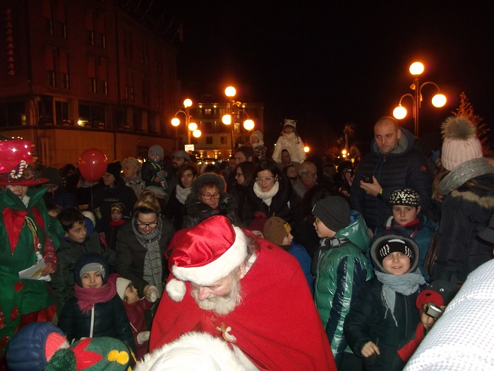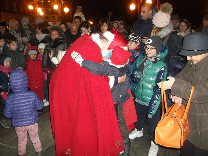 OMEGNA- 01-12-2017- E' stato Babbo Natale il grande protagonista della giornata in cui ad Omegna sono iniziati ufficilmente i festeggiamenti per il Natale. Arrivato dal lago a bordo di un motoscafo, Babbo Natale è stato accolto da qualche ragazzino e a loro ha dispensato abbracci e saluti calorosi. Stessa scena che si è ripetuta, poi, sotto i portici del Municipio dove Babbo Natale ha ascoltato le richieste di altri bambini. Quindi è stato acceso l'Albero e Babbo Natale ha potuto prendere posto all'interno del pacco che è stato posizionato proprio sotto i portici del Municipio. In contemporanea tutte le luminarie hanno preso vita e colore.