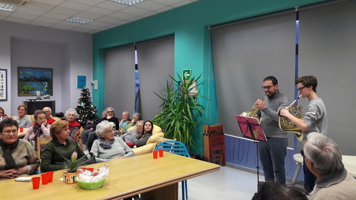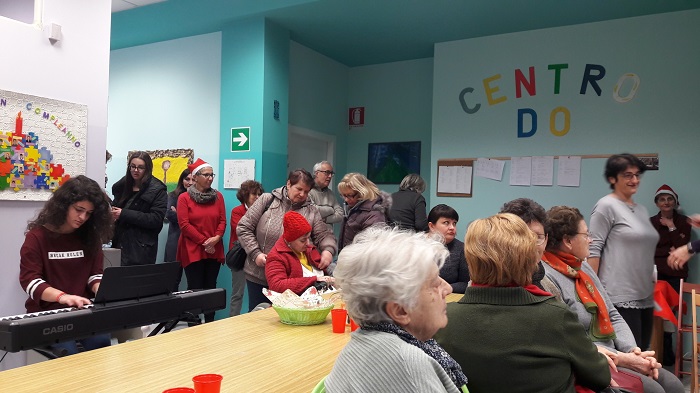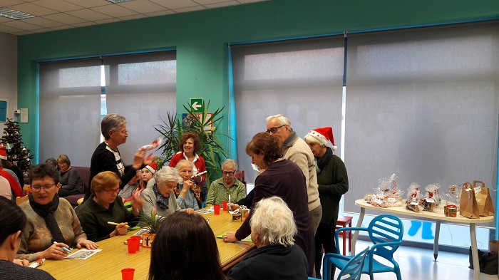 OMEGNA-21-12-2017- Il Natale è una festa da passare insieme e così han fatto nel pomeriggio di ieri, mercoledì 20 dicembre, gli anziani del ProMemoria Caffè che da settembre, ogni due settimane, si trovano presso il centro diurno del Ciss Cusio di Omegna con volontari, dipendenti del Ciss e del reparto geriatria dell’Asl, per trascorrere momenti di piacevole compagnia con altre persone. “Il ProMemoria Caffè – dicono gli organizzatori – vuole essere un luogo dove varie ricchezze della città, dalle istituzioni alle associazioni di volontariato, dai giovani alle esperienze di Geriatria e Ciss, si mettono al servizio di chi vive un momento faticoso della propria vita”. Tra una fetta di pandoro e l’altra, i pazienti e gli accompagnatori hanno partecipato ad una tombolata con il presidente della Pro Senectute Gianni Desanti, con l’ausilio dei ragazzi più grandi dell’indirizzo socio-sanitario dell’istituto “Dalla Chiesa-Spinelli”. Sono poi intervenuti gli studenti del liceo musicale omegnese che hanno proposto alcuni momenti di canto natalizio con cui hanno voluto porgere i migliori auguri, insieme anche al neo-nominato presidente del Ciss Stefano Calderoni con il direttore Angelo Barbaglia e la rappresentanza dell’Associazione familiari Alzheimer, tra i promotori del progetto. Il prossimo incontro è fissato per mercoledì 10 gennaio con nuove attività tra balli, musica, giochi e laboratori “per agire non solo sul benessere ma anche su un possibile rallentamento della progressione della malattia” concludono gli organizzatori. (E.C.)