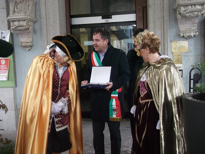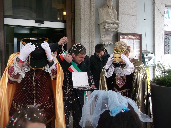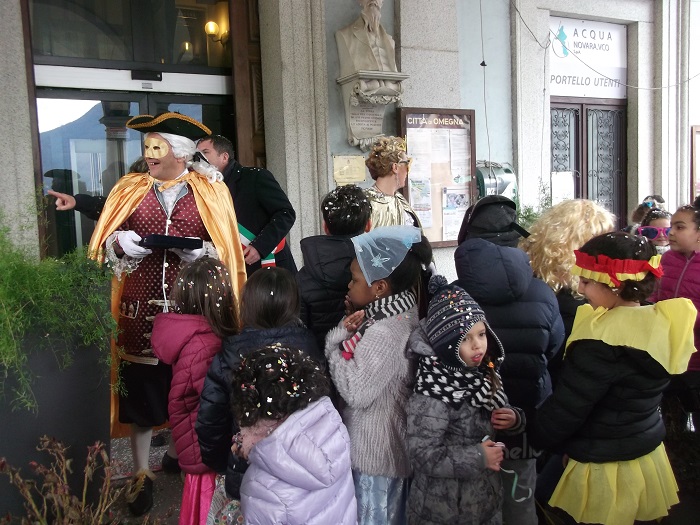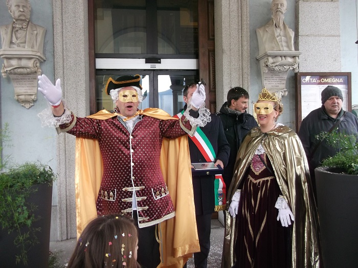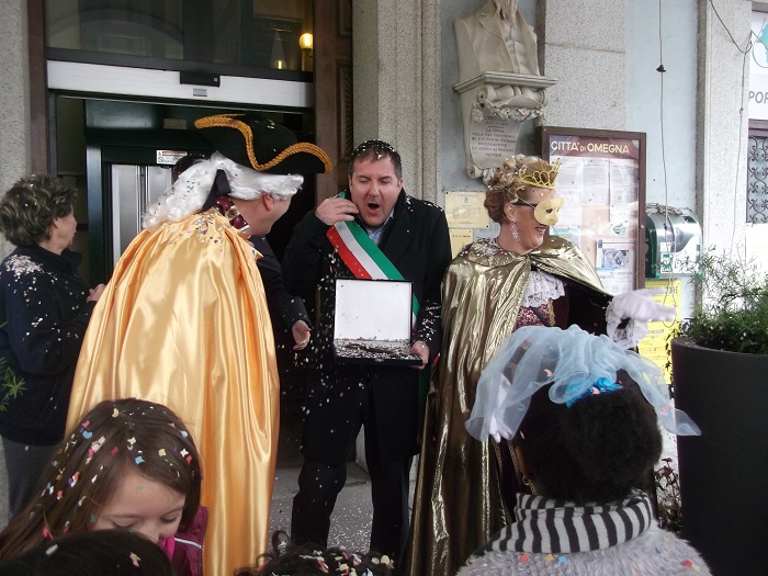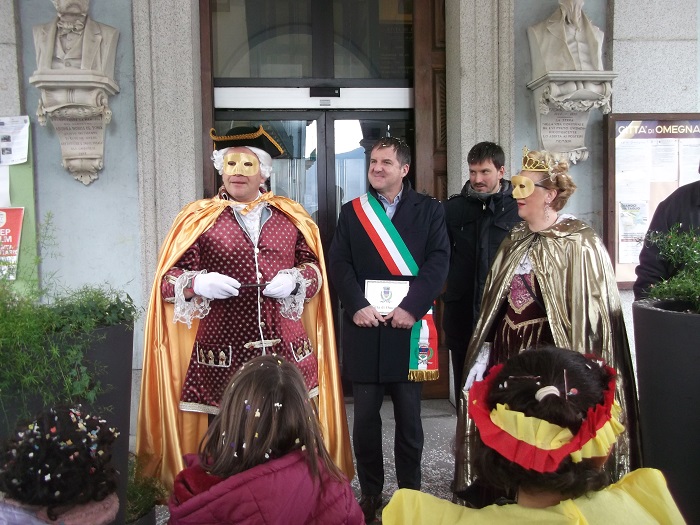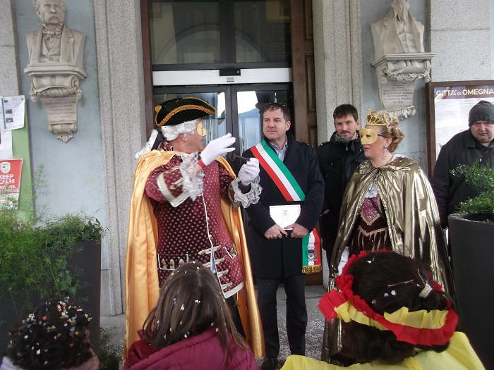 è avvenuto e da oggi, fino a mercoledì prossimo, saranno i Reali Nigoglia a governare la città di Omegna. Tra il serio e il faceto, il Sindaco Paolo Marchioni ha consegnato le chiavi della città nelle mani di Re Nigoglia questa mattina sotto i portici del Municipio. "Per qualche giorno- queste le sue parole- la città sarà in mano a loro e per eventuali problemi invito i cittadini a rivolgersi a loro. Io vado in vacanza". Re Nigoglia ha accettato l'incarico conferitogli e ha aperto ufficialmente il Carnevale 2018 di Omegna. In questo clima disteso, si è svolta la classica consegna delle chiavi con il Sindaco e il Re Nigoglia che sono stati inondati di coriandoli da grandi e piccini. Dopo la consegna delle chiavi della città, i bambini presenti hanno potuto gustare dolci tipici del periodo carnevalesco e bibite offerti dalla Pro Loco e dagli Alpini.