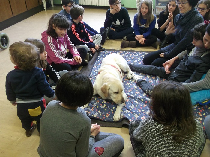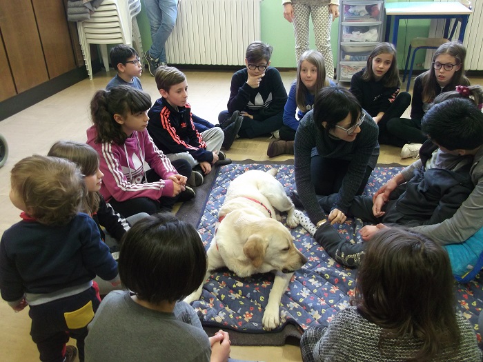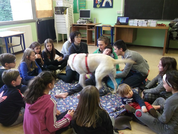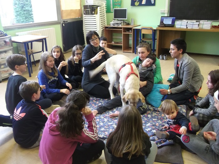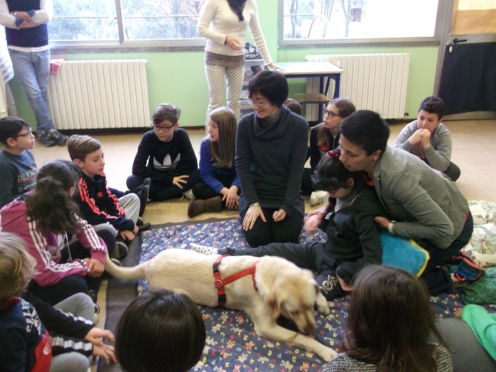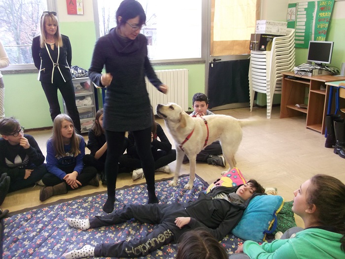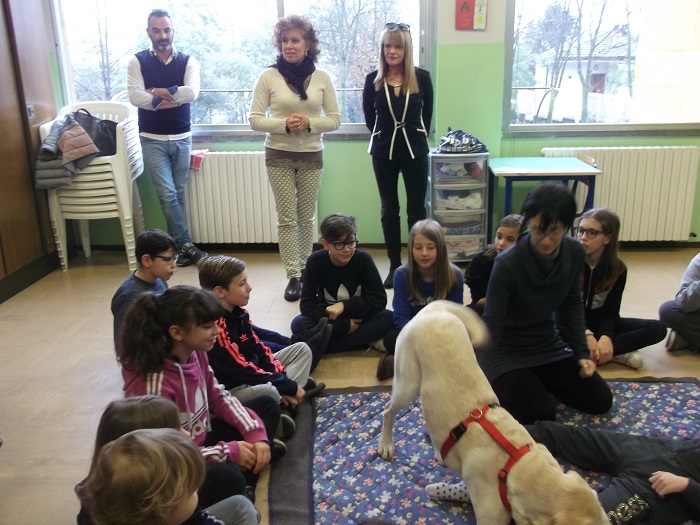 la consegna dell'assegno, dell'importo di 800 euro, da parte dei Lions Club di Omegna alla scuola elementare di Cireggio per il progetto di Pet Therapy partito da qualche settimana. "Abbiamo migliaia di richieste- le parole di Maura Cerutti presidente dei Lions di Omegna- ma questa è stata accettata con grande entusiasmo". Per due volte a settimana, e per un totale di venti ore, Kira, un Labrador di tre anni, entra in classe dove socializza con una bambina disabile, Sofia, entrando in contatto con lei. "Quando si aiuta una persona- continua Maura Cerutti- non si cambia il Mondo intero ma cambia il Mondo di questa persona". Le lezioni con Kira vedono la presenza anche di due educatrici, Laura D'Amelio e Alessio Olivetti, e di un compagno di classe di Sofia che cambia di volta in volta. "Il cane- spiega Alessia Olivetti- non sente la disabilità di Sofia come qualcosa di negativo e gli altri ragazzi capiscono che la diversità non è un qualcosa di cui aver paura o di brutto". "Per quest'anno- aggiunge la coordinatrice della scuola Paola Marchi- il progetto riguarda solo la classe di Sofia ma visti gli ottimi risultati che stiamo ottenendo, speriamo di poterlo allargare a tutte le classi". "Le prime lezioni- conclude Alessia Olivetti- sono servite per stabilire una corretta relazione tra i bambini e il cane. E' intervenuta una veterinaria comportamentista per un corretto approccio al cane".