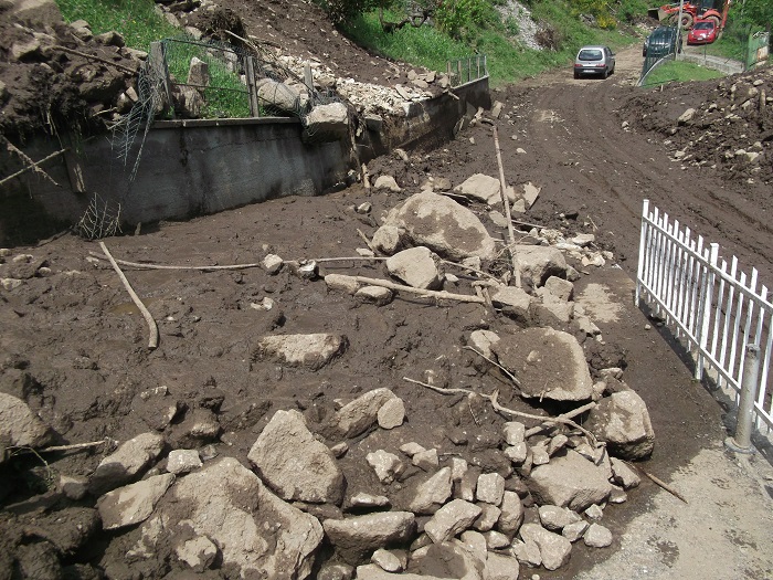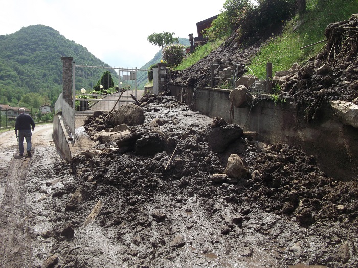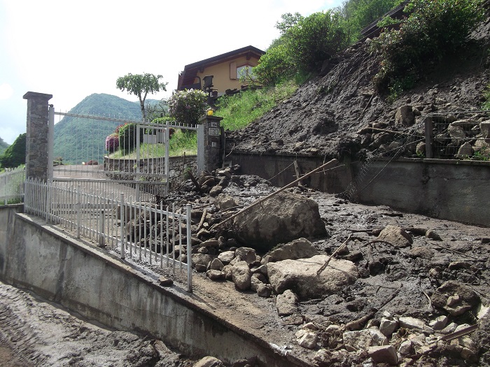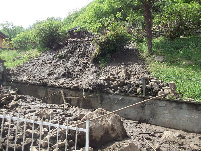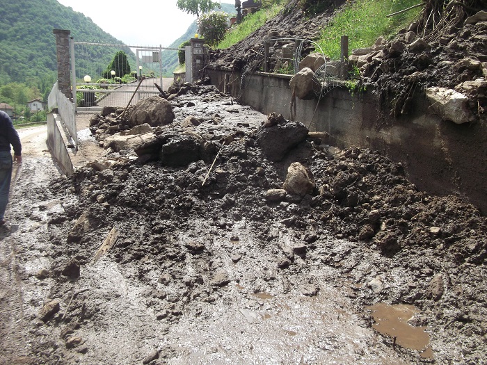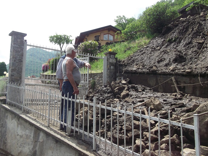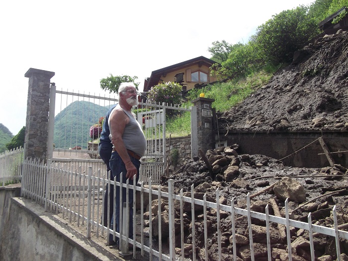 CIREGGIO- 07-05-2018- E' stata una notte di paura in quasi tutto il Cusio, in particolare ad Omegna, per via del violento temporale che si è abbattuto. A Cireggio, in via Flogno, si è anche sfiorata la tragedia con la frana che staccatasi da Quarna è passata vicino ad un'abitazione travolgendo il pollaio all'interno del quale c'erano 5 galline che sono state spazzate via. Benito De Filippi, e la sua famiglia, possono raccontare quanto è accaduto e si sono salvati per miracolo. La frana, infatti, è passata vicinissima alla loro abitazione tanto che i Carabinieri, nel corso della notte, li hanno poi accompagnati presso un parente che abita a San Fermo dove hanno potuto passare la notte. I danni, oltre al pollaio anche la rete di recinzione è stata divelta, verranno quantificati nei prossimi giorni e per loro, fortunatamente, solo un grosso spavento e nulla più. La frana, che ha portato a valle fango e detriti, ha solo sfiorato l'abitazione nella quale risiedono da una quarantina di anni. Il Signor De Filippi se l'è cavata con una battuta, sulla brutta sorte che hanno avuto le galline: "L'anno scorso me le avevano mangiate le volpi, stavolta sono state spazzate via dalla frana".