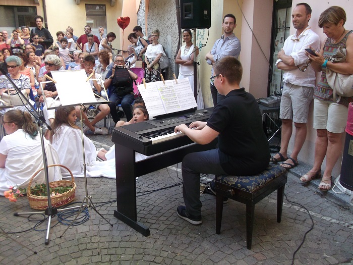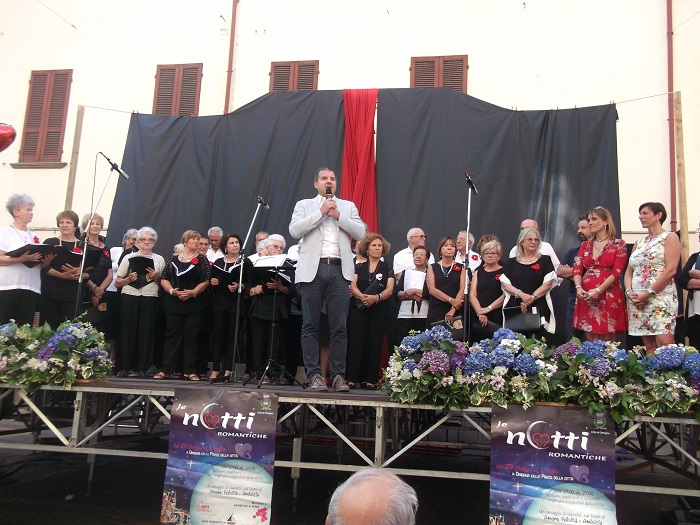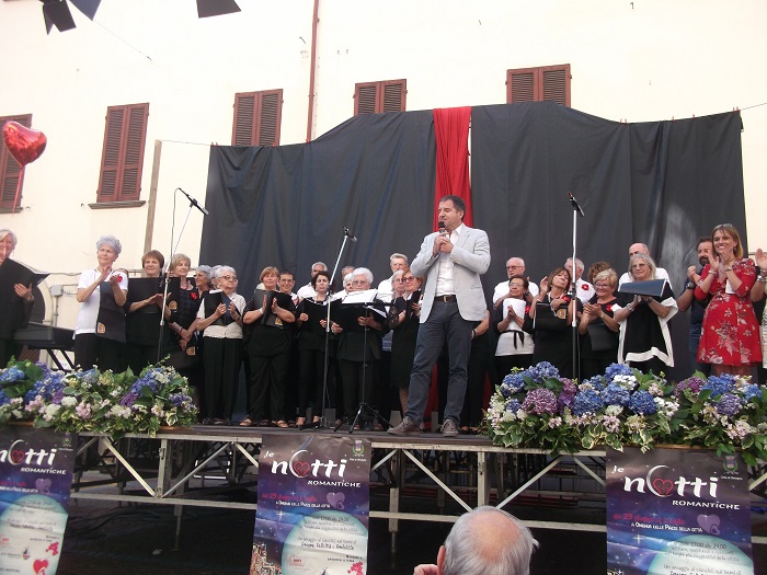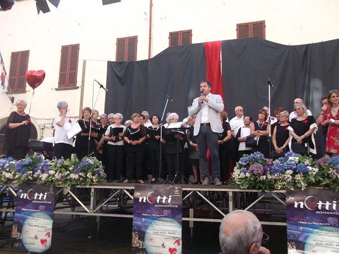 OMEGNA- 29-06-2018- E' stato un avvio, quello delle Notti Romantiche, che ha strappato consensi e applausi. Una giornata, la prima di una tre giorni che si preannuncia ricca, che è cominciata con i saluti del Sindaco che, dopo aver ringraziato l'Assessore Sara Rubinelli, ha aperto la giornata dedicata all'amore con l'intervento musicale degli allievi del laboratorio di canto corale dell'UNI3. Sulle note di "Non dimenticar le mie parole" ha preso il via la manifestazione con il coro dell'UNI3 che ha proseguito con "Pensiero" e "Mademoiselle de Paris". Un crescendo di emozioni che dalla Piazza Mameli si è spostato in Piazza VIII marzo dove gli studenti della Scuola Media di Crusinallo hanno messo in scena "Pasticci(ni) romantici", felice gioco di parole che ha poi lasciato il posto agli studenti del Liceo Gobetti che si sono esibiti sulla zattera con letture e interventi musicali in tema “Amor, ch’a nullo amato amor perdona” sotto la direzione di Angela Centola. Di nuovo protagonista la Scuola Media di Crusinallo con “Dalla ‘Sapienza dell’amore all’amor gentile”, una passeggiata tra le poesie d’amore italiane medioevali. La chiusura di questa prima parte ha visto protagonista la Scuola Primaria di Crusinallo con con un accompagnamento musicale di violino, clarinetto e tastiera in “Bolli…AMO”. Dopo cena, per chiudere in bellezza, appuntamento in Piazza Mameli per “Il Canzonatore di Cuore”, teatro tratto dal Don Giovanni di Molière, portato in scena dalla Compagnia Amici per un Sogno di Omegna. Roberto Olzer, in uno splendido concerto al pianoforte, accompagnato dalla voce di Gian Maria Ferraris, ha chiuso la prima giornata con "Sempre e per Sempre" con Electric Land che ha proiettato sulle pareti di Piazza Mameli frasi d'amore significative. Domani, sabato 30 giugno, si replica con la felicità come tema dominante della seconda serata delle Notti Romantiche.