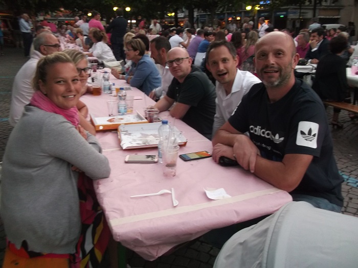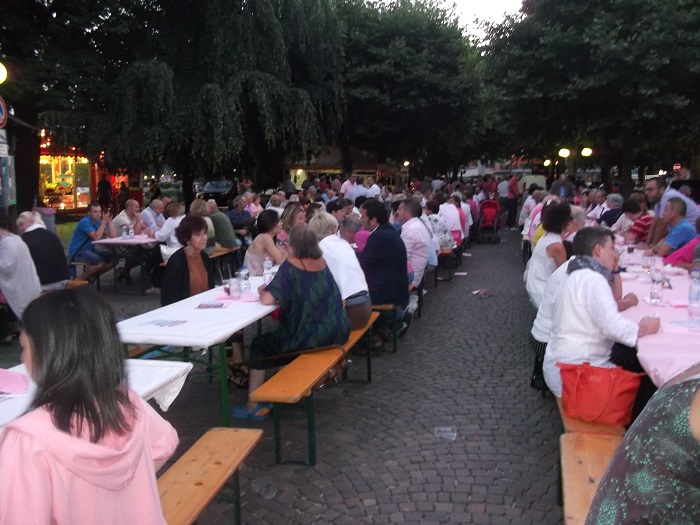 ad Omegna che sabato ha vissuto una giornata completamente dedicata all'arrivo della quinta tappa della corsa ciclistica che martedì interesserà proprio Omegna. Un sabato cominciato nel tardo pomeriggio con lo spinning benefico in piazza Salera organizzato dal Bici Club Omegna e da Marta Fovanna. Un paio d'ore a pedalare, sotto il solleone, per un nobile scopo, ovvero la beneficenza. A ritmo di musica, e con i comandi di Marta, la ventina di iscritti hanno attirato tanti curiosi che si sono assiepati nella piazza salotto. Lo spinning ha fatto da apripista ad una serata tutta dedicata al Giro d'Italia femminile con l'aperitivo in rosa che ha preceduto la cena rosa che ha visto la Pro Loco preparare, distribuire, paellla e sangria per 150 persone, circa, che partecipando all'evento hanno contribuito, anche loro, alla beneficenza. Il raccolto della serata, infatti, verrà gestito dall'assessorato alle politiche sociali per aiutare chi ha bisogno. Una cena, quella rosa, che si è conclusa con la torta, rigorosamente rosa e a forma di italico stivale, offerta dal Pasticcere solidale. Poi via con la musica: quella di Salvatore Ranieri, il cantante della solidarietà, che dopo il suo spettacolo ha lasciato il palco ai "Funky Brothers", band locale. Il gran finale, poco prima di mezzanotte, è stato dedicato ai fuochi d'artificio, in tema con la serata e quindi in prevalenza di colore rosa, della ditta GFG Pyro. La notte omegnese, di attesa verso il Giro d'Italia femminile, si è chiusa con la Notte Rosa con i deejay della ex Perla a far ballare una città che è pronta per l'evento di martedì 10 luglio.