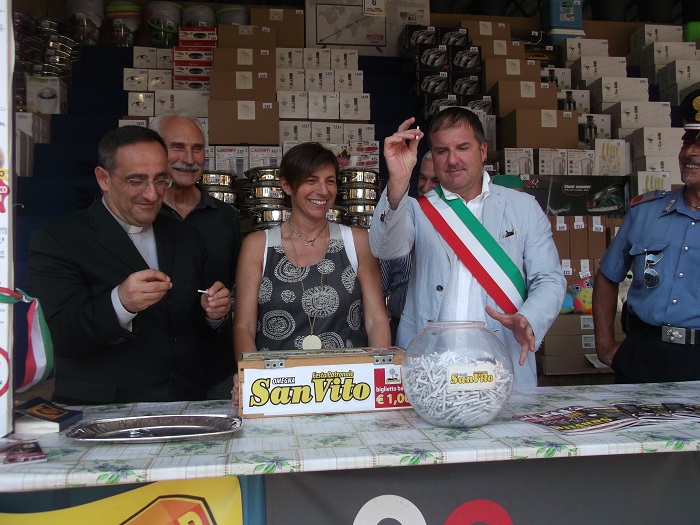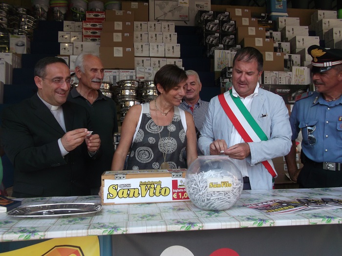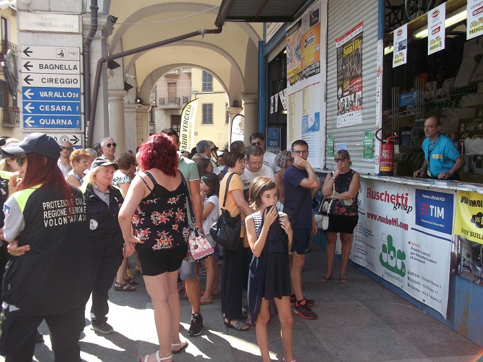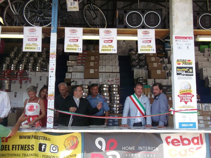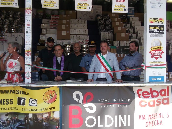 minuto di silenzio, seguito dalla preghiera di don Gianmario Lanfranchini per le vittime del crollo del Ponte Morandi a Genova, è stato il prologo dell'apertura ufficiale del Banco di Beneficenza che ha dato il via ai festeggiamenti di San Vito. "Omegna- queste le parole del parrocco- si stringe attorno alle famiglie delle vittime di Genova e per tutta la durata di San Vito le ricorderà". Dopo il minuto di silenzio, le note della Nuova Filarmonica Omegnese hanno accompagnato il taglio del nastro con l'Inno di Mameli che è risuonato nel largo Cobianchi. Il taglio del nastro e, come vuole la tradizione, i primi biglietti venduti con il Sindaco, Paolo Marchioni, e proprio don Gianmario protagonisti delle prime vincite. Un prodotto alimentare per don Gianmario, un prodotto della scuola per il Primo cittadino che ha voluto, anche lui, augurare buon San Vito agli omegnesi. "Anche quest'anno un applauso agli organizzatori che hanno messo in piedi un programma ricco e ben assortito". "Omegna è pronta- ha poi ribadito il Presidente del Comitato San Vito Roberto Dossi- per vivere questi dieci giorni". La festa è cominciata e mentre la Nuova Filarmonica Omegnese proseguiva con i suoi brani, i primi biglietti sono stati venduti e i primi premi vinti. Due le macchine in palio oltre a numerosi viaggi, biciclette e premi di ogni genere e valore.
