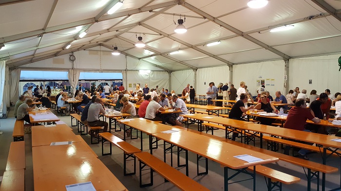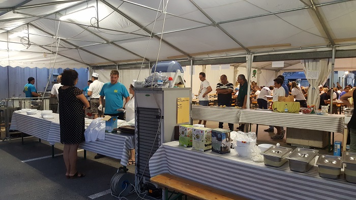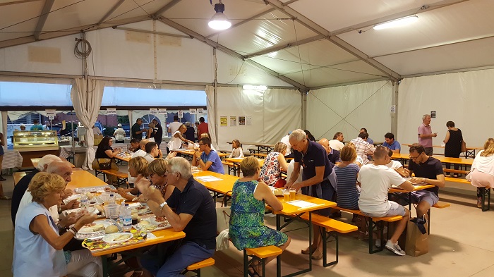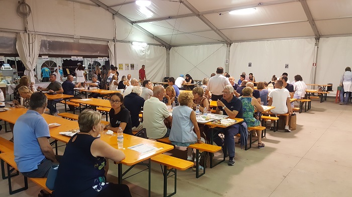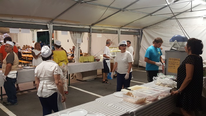 OMEGNA-19-08-2018- Con l’inizio della 115a edizione dei festeggiamenti di San Vito è stato possibile provare una novità: l’area gastronomica “Cittadella del gusto” che si trova luogo presso il tendone dell’oratorio. Nella serata di ieri, sabato 18 agosto, più di cento sono stati gli avventori che si sono saziati con i piatti preparati e serviti da Ablo, Kenzio Bellotti, il gruppo famiglie dell’oratorio, la Caritas, l’associazione S. Vincenzo, gli Alpini e gli attivi ragazzi di San Vito Giovani. Grande entusiasmo in cucina tra i volontari di Ablo, ancora una volta impegnati in attività di rilievo nell’ambito turistico omegnese: “Ci teniamo ad Omegna ed è per questo che siamo così attivi, perché è Omegna, e Omegna ci risponde” spiegano alcuni di loro. Don Gian Mario, parroco cittadino, ha spiegato quali sono i capisaldi alla base della nascita dell’area gastronomica: “Lavorare insieme come volontari e associazioni; avere uno sguardo di solidarietà ed attenzione al territorio in un momento di condivisione e promozione dei gusti e delle realtà locali; far abitare la città e l’oratorio nei giorni della festa”. Per tutte le serate della festa, fino al pranzo degli omegnesi di lunedì 27 agosto, associazioni attive sul territorio della riviera cusiana contribuiranno al corretto svolgimento dell’area con lo scopo di “creare un fondo comune poi gestito dalla Fondazione Comunitaria del Vco che promuoverà poi dei bandi a favore della promozione culturale e sociale della nostra zona” ha riferito Roberta Oldrati del gruppo parrocchiale di Crusinallo; presentando un caso che la riguarda da vicino, Oldrati vede per esempio come possibile evento straordinario la ristrutturazione dell’oratorio di S. Luigi grazie ad un contributo di questo fondo. Presente alla cena anche l’assessore omegnese al turismo Mattia Corbetta: “La ‘Cittadella del gusto’ è un’opportunità importante perché vengono proposti prodotti locali dalle stesse associazioni che nel corso di tutto l’anno operano per rendere vivace il nostro territorio”. Poi conclude: “La Pro Loco non era più in grado di gestire quest’area, questa novità permette di mostrare come insieme, con varie collaborazioni, si ottengano risultati significativi”. (E.C.)