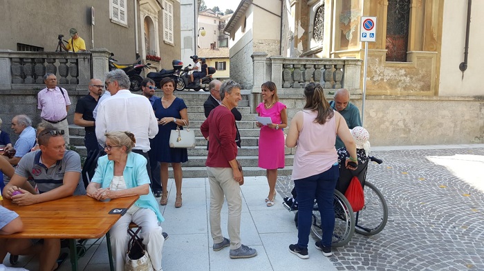 da molti letto come un buon auspicio, e tanta gente per l'inaugurazione ufficiale della nuova Piazza Beltrami. Già usufruibile da una decina di giorni, uno dei luoghi più "vissuti" della cittadina cusiana, è stato inaugurato ieri, durante il periodo di San Vito. "Oggi- le parole del Sindaco Paolo Marchioni- la piazza viene restituita agli omegnesi. Ringrazio tutti coloro che hanno partecipato alla realizzazione e alla nascita di questa nuova piazza che vuole essere un punto di aggregazione per tutti noi. Ringrazio la precedente Amministrazione: il progetto è nato sotto la Giunta Mellano e noi lo abbiamo portato avanti. E ringrazio anche chi ha avuto la pazienza di sopportare i disagi creati dai lavori". "Oggi- ha quindi proseguito il primo cittadino- vede la luce una piazza che è cambiata rispetto a come eravamo abituati a vederla. E' cambiata la viabilità e il modo di interpretare questo luogo. Ai miei concittadini chiedo di usarla di più, di viverla e di rispettare il suo nuovo corso". In rappresentanza della Giunta Mellano era presente Maurizio Frisone, allora vice sindaco e oggi consigliere di minoranza all'interno del Pd: "E' bello vedere rinascere questo luogo e mi unisco alle parole del Sindaco ringraziando tutti coloro che hanno lavorato alla realizzazione di questa piazza". Prima e dopo il taglio del nastro, l'Orchestra GMO (Giovani Musicisti Ossolani), hanno suonato diversi brani e intrattenuto in folto pubblico presente. Oltre all'inaugurazione della Piazza, sono stati festeggiati gli ottantenni omegnesi, per un'iniziativa voluta dall'Assessore alla Cultura Sara Rubinelli.