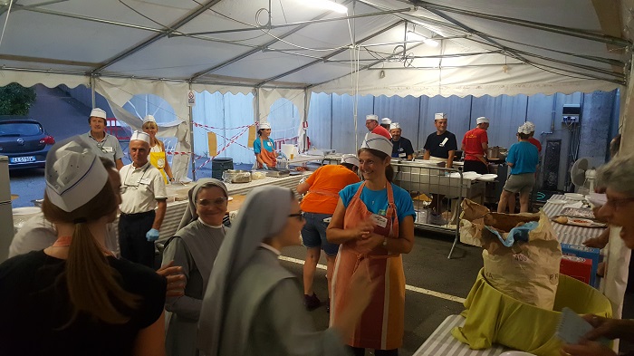 OMEGNA-22-08-2018- Si è presentata con “Ma quanti che siete!” la suora più famosa della tv sul palco di piazza Salera nella serata di ieri, martedì 21 agosto. Nota per la sua vittoria al talent show “The Voice of Italy” nel 2014, suor Cristina ha presentato ai festeggiamenti omegnesi di San Vito una serata all’insegna della cordialità, trasmessa da una donna caratterizzata da una voce unica e coinvolgente, un vero dono di Dio. Dal modo dolce e pacato, Cristina Scuccia, nome vero della suora orsolina, ha presentato al pubblico che ha riempito piazza Salera un repertorio fresco e giovane come lei, con brani che non trascurassero però quello che è il suo vero amore grande, quello per Dio, esperienza che vive con grande serenità e convinzione. Tra un brano e l’altro non ha mancato di raccontare aneddoti e momenti della sua vita come, per esempio, i due anni in Brasile da novizia. Prima dello spettacolo, la giovane suora trentenne ha raggiunto la “Cittadella del Gusto” presso il tendone dell’oratorio dove, accompagnata da don Gian Mario Lanfranchini ed altre sorelle, ha ricevuto un caloroso applauso dagli oltre duecento commensali presenti; in tanti le hanno chiesto un autografo, altri l’hanno fermata per poter scambiare veloci battute. Ha poi stretto la mano ai numerosi volontari delle pro loco quarnesi impegnati nella preparazione delle patate nella cuchela, dimostrando una grande umanità che ha dimostrato con il suo atteggiamento delicato ed entusiasta. (E.C.)
