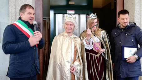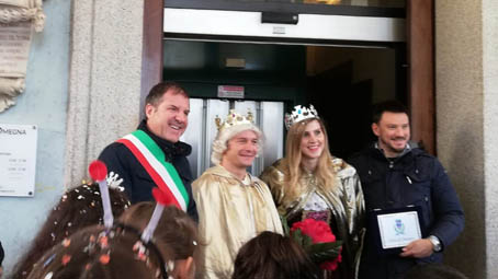 delle chiavi da parte del sindaco Paolo Marchioni ai Reali della Nigoglia, ha preso via ufficialmente il grande carnevale omegnese. Il Carnevale è stato subito allietato dai dolci della tradizione offerti da Germano Navigli, della panetteria di Via De Amicis 34. Impersonificate da Matteo Pino e da Erika Gasparetti, le due teste coronate, hanno dato il via al programma ufficiale di una festa che, spalmata su cinque giornate, promette un ricco calendario di appuntamenti volto coinvolgere ovviamente i bambini ma anche i grandi. Numerosi gli eventi in maschera che si succederanno da domani, venerdì 1 marzo, per poi giungere alle ore 12 di domenica 3 marzo, ancora sotto i portici di Palazzo di Città, con il tradizionale rendez-vous con il pranzo organizzato dalla Pro Loco cittadina.
