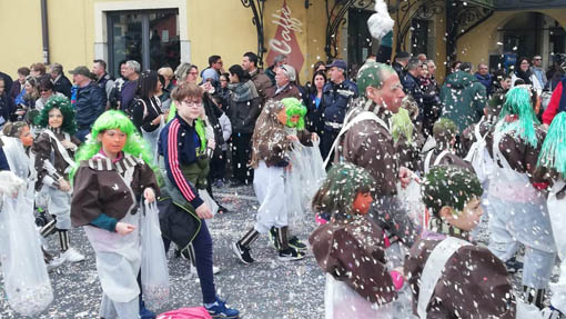 OMEGNA -05-03-2019- Presenze record per l’edizione 2019 del carnevale omegnese. Nella città cusiana domenica 3 marzo è sbocciata, come una meravigliosa primavera, una festa grandiosa: tantissime persone hanno gremito la piazza, altrettante hanno sfilato per le vie cittadine…un grande successo! Grandi e piccini domenica si sono lasciati travolgere dall’allegria contagiosa del carnevale che ha portato una vera e propria sferzata di freschezza e vivacità a Omegna. Bellissime le mascherine divertite saltellanti festose fra la folla, curiosi e spiritosi i grandi che per l’occasione hanno dato libero sfogo alla propria fantasia, notevoli i carri allegorici e i gruppi che hanno sfilato fra musiche canti e balli, impeccabili i reali Nigoglia -le due maschere storiche di Omegna- che hanno regalato tanti sorrisi e saluti a tutti. A vincere la sfilata è stato il carro degli Gnomi del Mastrolino: un carro bello, grande, tanto grande e coloratissimo.