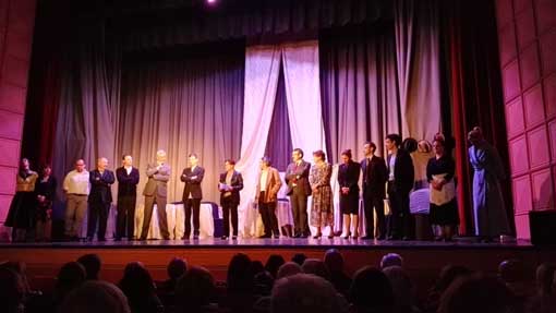 OMEGNA –23-05-2019 - Un fiume di applausi ha salutato lunedì al Teatro Sociale la commedia "Sabato, domenica e lunedì" di Eduardo De Filippo, portata magistralmente in scena dalla compagnia teatrale “Vento di Teatro” di Verbania, per la regia di Silva Cristofari. Così, dopo la sapiente allocuzione di Antonio Mete, presidente dell’Associazione “Gente del Sud” di Omegna, si è aperto il sipario su questa commedia in tre atti del 1959, restituita agli spettatori nella sua originale freschezza. La trama, che trae origine da un equivoco, si dipana in una girandola di incomprensioni in casa Priore, tra la solare Rosa e lo scostante Peppino, dietro un sospetto di tradimento assolutamente immotivato. Lo spettatore, grazie a un cast convincente e affiatato, si può divertire all’incedere incalzante delle battute e apprezzare i personaggi tratteggiati con maestria da De Filippo: la zia petulante e indiscreta, il cugino mammone e impacciato, la ragazza volubile e capricciosa, per non parlare poi dello zio impiegato di banca ma con ambizioni attoriali, che giunge persino a esibirsi nei panni di Pulcinella davanti ai parenti esterrefatti. Infine, i conflitti generati soltanto da un equivoco, si risolvono, tra una battuta e l’altra e lo scroscio di applausi del pubblico. Ma riveliamo ora i nomi degli attori che compongono lo straordinario cast: Gilda Saiz (Rosa), Rosita Clemente (Virginia), Michele Romano (Peppino), Daniele Mennillo (Rocco), Daniele Santarosa (Federico), Gennaro Carotenuto (Antonio), Marianna Izzo (Giulianella), Margherita Palladino (Amelia), Giulio Saiz (Attilio), Emilio di Biase (Raffaele), Antonio Galiotto (Luigi Ianniello), Filomena Bellucci (Elena Ianniello), Alessandro Clemente (Michele), Anna Grieco (Maria Carolina) e Pasquale Turchiaruolo (Roberto). A margine dello spettacolo Maria Spoto, membro dell’associazione “Gente del Sud”, ha rimarcato che “L’associazione è nata dal desiderio di condividere le nostre radici e origini meridionali, per sentirci vicini, anche se lontani, alla nostra terra. Essa si pone degli importanti obiettivi, finalizzati a: 1. promuovere eventi particolari sul territorio per far conoscere e incontrare, tramite la cultura, usi e costumi, tradizioni e storia, sapori e profumi del Sud; 2. Sostenere progetti socio-solidali di quelle associazioni che operano sul territorio cusiano a sostegno dei più deboli e bisognosi”. “Due sono state le serate già organizzate - ha proseguito Spoto – come quella di febbraio “Grandi poeti del Sud” con la declamazione di alcune poesie (da Trilussa a Totò passando per De Filippo, Buttitta e altri ancora) e di alcuni poeti locali, tra i quali la sottoscritta con la presentazione di una silloge dal titolo “Sulle ali delle emozioni” e con la partecipazione dell’associazione lucana di Verbania. Inoltre vi anticipo che prossimamente ci sarà la presentazione del libro del nostro coordinatore, Giovanni Rondinelli. L’augurio che ci facciamo è che la vostra partecipazione sia altrettanto numerosa. Infine, grazie ancora una volta alla compagnia teatrale “Vento di Teatro di Verbania”. A tutti voi auguriamo un gustoso e croccante cannolo siciliano (gentilmente offerto a tutti i presenti, n.d.r.) e una serena notte. L’evento, promosso dall’associazione “Vento di Teatro”, è stato organizzato dall’associazione socio-culturale “Gente del sud”, dalla “Pro Senectute” e dal circolo operaio “Franco Ferraris”, con il patrocinio del comune di Omegna. Il ricavato della serata sarà devoluto a favore del progetto “ProMemoria caffè", un’iniziativa rivolta a persone con problemi di memoria e ai loro familiari.