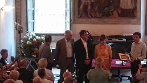 OMEGNA –03-09-2019 - San Vito si è colorato di sociale con la consegna del premio “Francobollo d’oro”; il premio, istituito trent’anni fa dietro iniziativa di Salvatore Viganò e di Celeste Barducci, viene tradizionalmente assegnato nel corso dell’annuale festa patronale di San Vito a un omegnese che si sia dedicato in modo del tutto disinteressato nel campo sociale o culturale. Nel tardo pomeriggio di lunedì l’emozione era palpabile e un fremito d’attesa aleggiava tra il pubblico accorso per la premiazione, che riempiva il salone Santa Marta di calore e di vita. Poi, l’atteso annuncio della vincitrice, individuata dalla commissione all’unanimità: si tratta di Laura Martinoli, coordinatrice dell’associazione piemontese retinopatici e ipovedenti della sezione provinciale del Verbano Cusio Ossola, accolta dal pubblico con un applauso colossale. Il francobollo, come ha illustrato il presidente del premio Valentino Valentini, vuole essere un sincero riconoscimento per “la costituzione della sezione provinciale dell’associazione piemontese retinopatici e ipovedenti nell’anno 2008, coinvolgendo una decina di persone, e grazie soprattutto alla volontà e determinazione della signora Laura Martinoli. Seguendo le finalità proprie del sodalizio, essa ha intrapreso numerose e importanti attività a favore dei disabili, attraverso iniziative di assistenza, di formazione e di aiuto a persone ipovedenti e non vedenti. Grazie a diverse iniziative l’associazione ha potuto donare alle strutture sanitarie della provincia nuove attrezzature mediche sia per la cura che per la prevenzione delle malattie visive”. A tributare entusiastiche lodi alla vincitrice ci hanno pensato poi il presidente del comitato festeggiamenti Massimo Nobili, il sindaco Paolo Marchioni e del parroco don Gian Mario Lanfranchini, ricordando che tutti –dopo la premiazione- portano a casa una ricchezza, un patrimonio di uomini e donne capaci di fare il bene nel silenzio e nella quotidianità; e in tempi in cui ci sono tante preoccupazioni, momenti come questo devono incoraggiare e rincuorare.