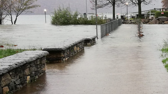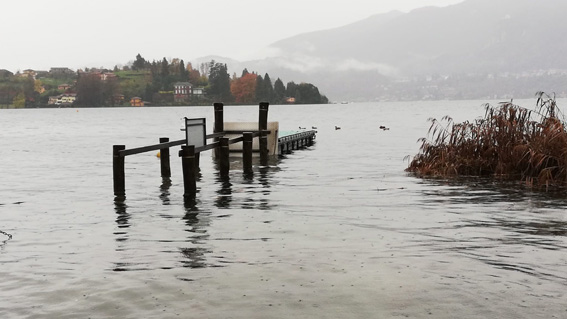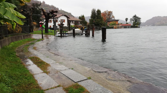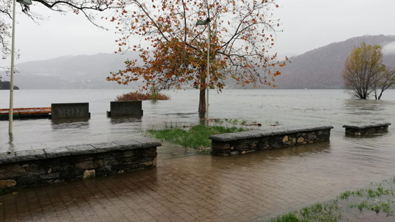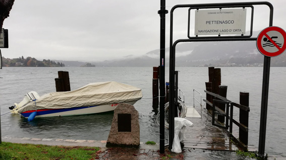 PETTENASCO -24-11-2019 - L'abbondante pioggia di questi giorni ha portato all'innalzamento del livello del lago d'Orta, che oggi è esondato anche a Pettenasco.