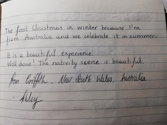 La testimonianza di quanto grandi e piccini abbiano apprezzato il Presepe arriva dai tantissimi messaggi scritti sul diario: i pensieri dei bambini sono di una tenerezza straordinaria, quelli degli adulti -invece- trasmettono la voglia che tanti hanno di aprirsi per far emergere alla luce il proprio “io” prendendosi del tempo per descrivere l’emozione di un momento speciale dialogando con se stessi e con gli altri, con eventi passati e futuri, con sogni, speranze…