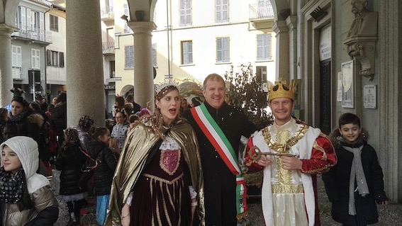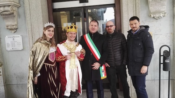 ufficiale delle chiavi della città ai Reali Nigoglia da parte del sindaco Paolo Marchioni, alle 10.30 di oggi, giovedì 20 febbraio, si è aperta ufficialmente l'edizione 2020 del Carnevale Omegnese. Alla consegna, avvenuta sotto i portici del Municipio, hanno partecipato anche le scuole della città ed il Gruppo Alpini di Omegna.