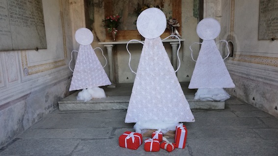 Sono loro ovviamente, sono le Tricottine, che anche quest’anno hanno abbellito il comune di Ameno con decori fatti a maglia che arrivano agli occhi e al cuore come una dolce coccola.